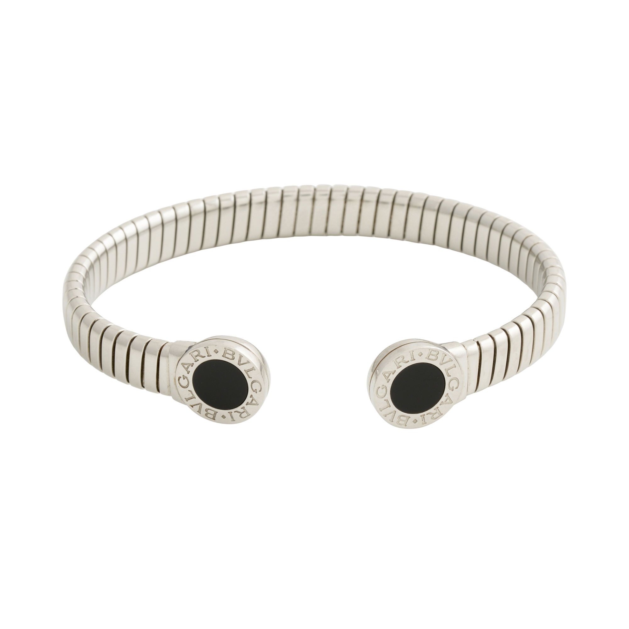 BULGARI, ONYX AND STAINLESS STEEL 'TUBOGAS' BANGLE
