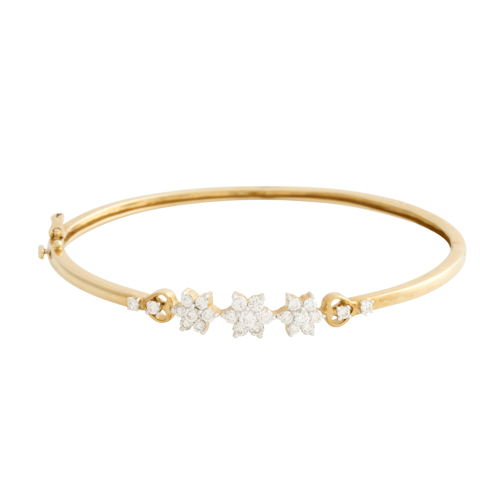 Comprising a necklace featuring a structured central panel detailed with floral clusters of claw-set round brilliant-cut diamonds and suspending a cluster drop, to an integral wheat link chain completed by a bolt ring clasp; an oval hinged bangle, set to the top with three floral clusters of claw-set brilliant-cut diamonds flanked by four claw-set brilliant-cut diamonds; and a pair of earrings comprising a floral cluster of claw-set brilliant-cut diamonds, to screwback fittings, the diamonds together weighing approximately 2.85 carats, necklace length 440mm, bangle circumference 160mm, gross weight approximately 23.0 grams.