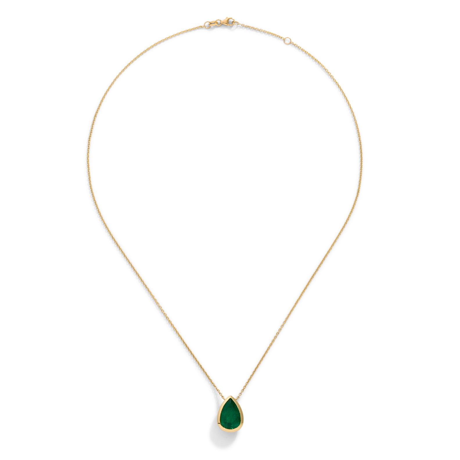 The pear-shape emerald weighing approximately 4.94 carats, is bezel-set, supported by a fine trace link chain, mounted in 18ct gold, inner circumference 440mm (adjustable).