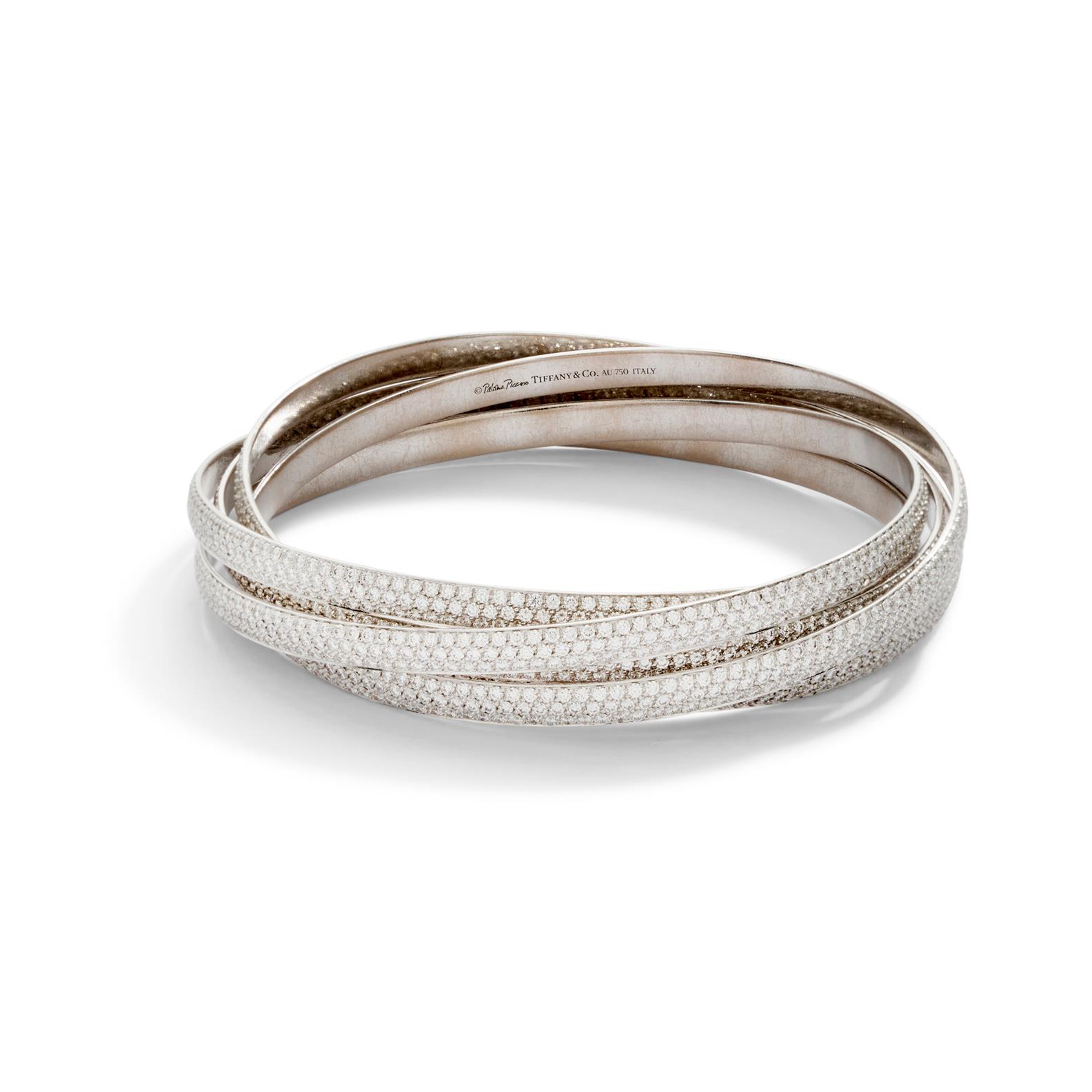 Composed of five interlaced 4mm half round bands, pavé-set with brilliant-cut diamonds, mounted in 18ct white gold, signed Paloma Picasso, Tiffany & Co.