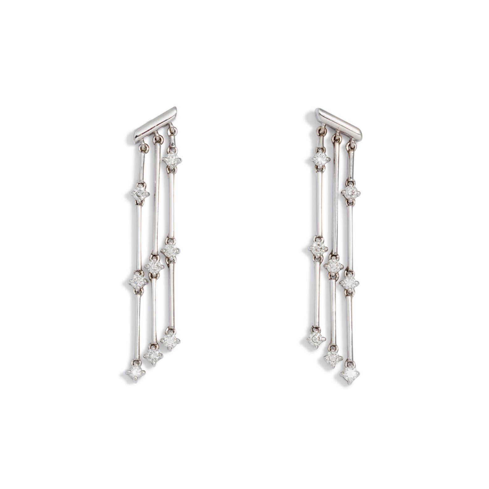 Comprising of: a pendant necklace designed as a five line tassel claw-set at intervals with brilliant-cut diamonds supported from a trace link chain, a pair of earrings en-suite, earrings length 40mm, necklace inner circumference 390mm, tassel 56mm.