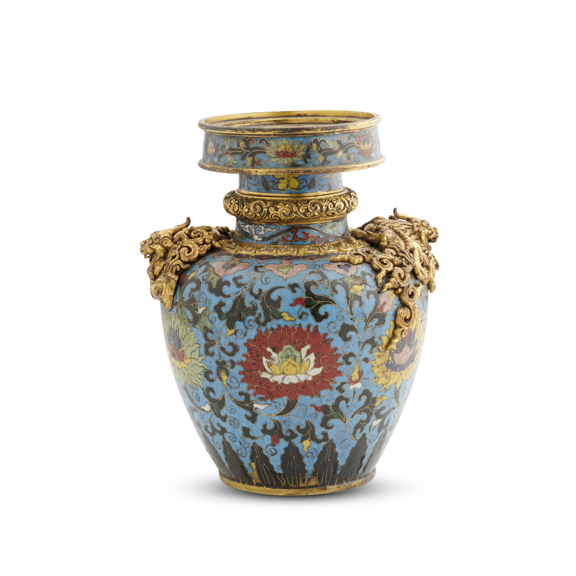 A FINE CHINESE CLOISONNE DRAGON HANDLED VASE ZUN, LATE MING/EARLY QING DYNASTY, 17TH CENTURY