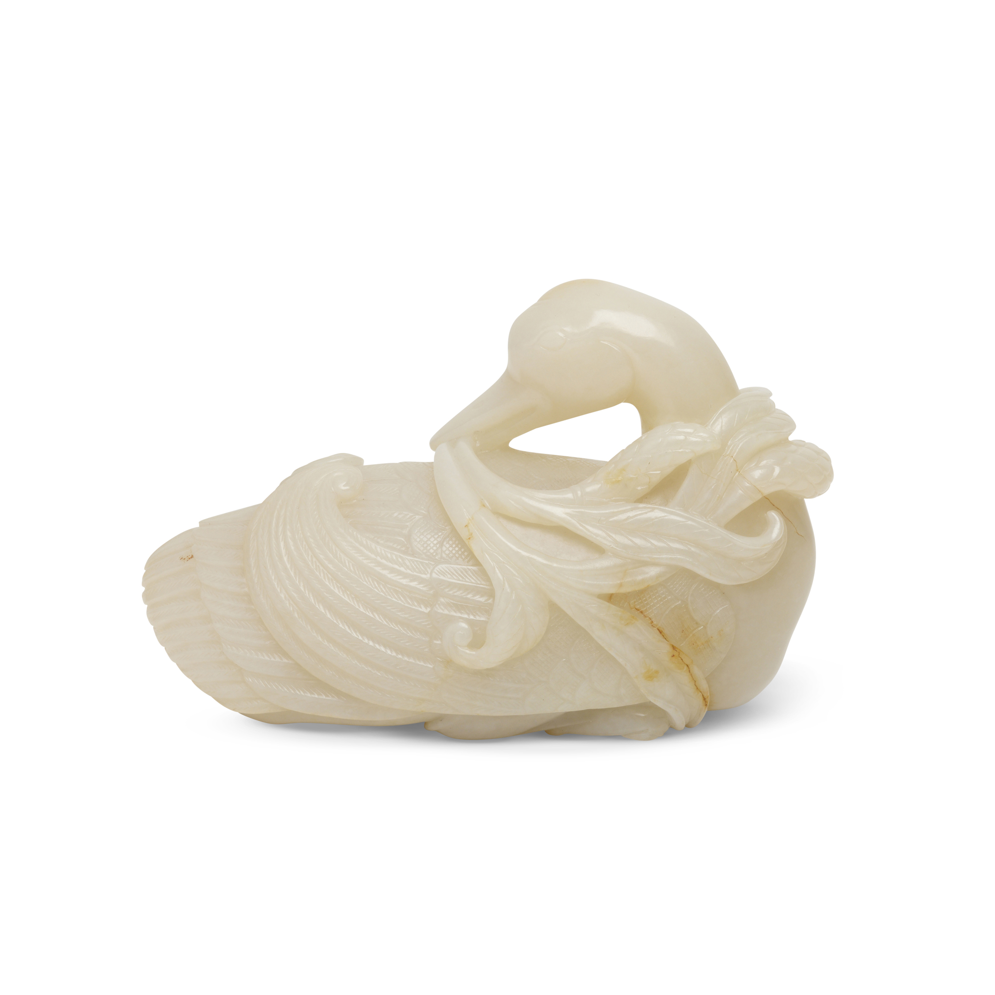 A VERY FINE AND LARGE CHINESE WHITE JADE CARVED GOOSE, QIANLONG PERIOD (1736 - 1795)
