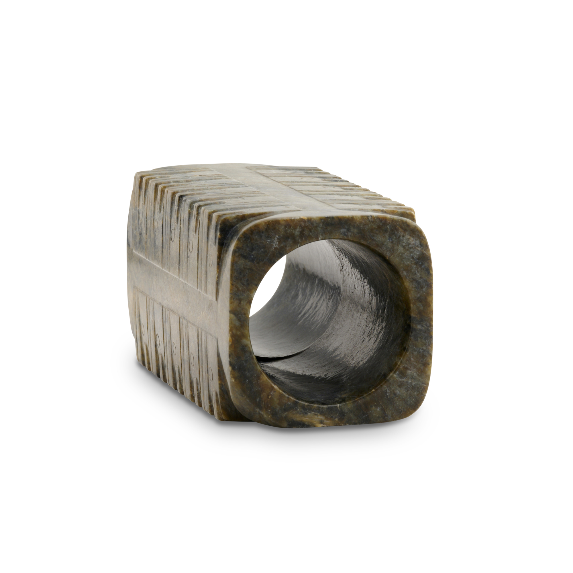 Possibly Liangzhu culture, cylindrical form with incised linear and mask motifs.