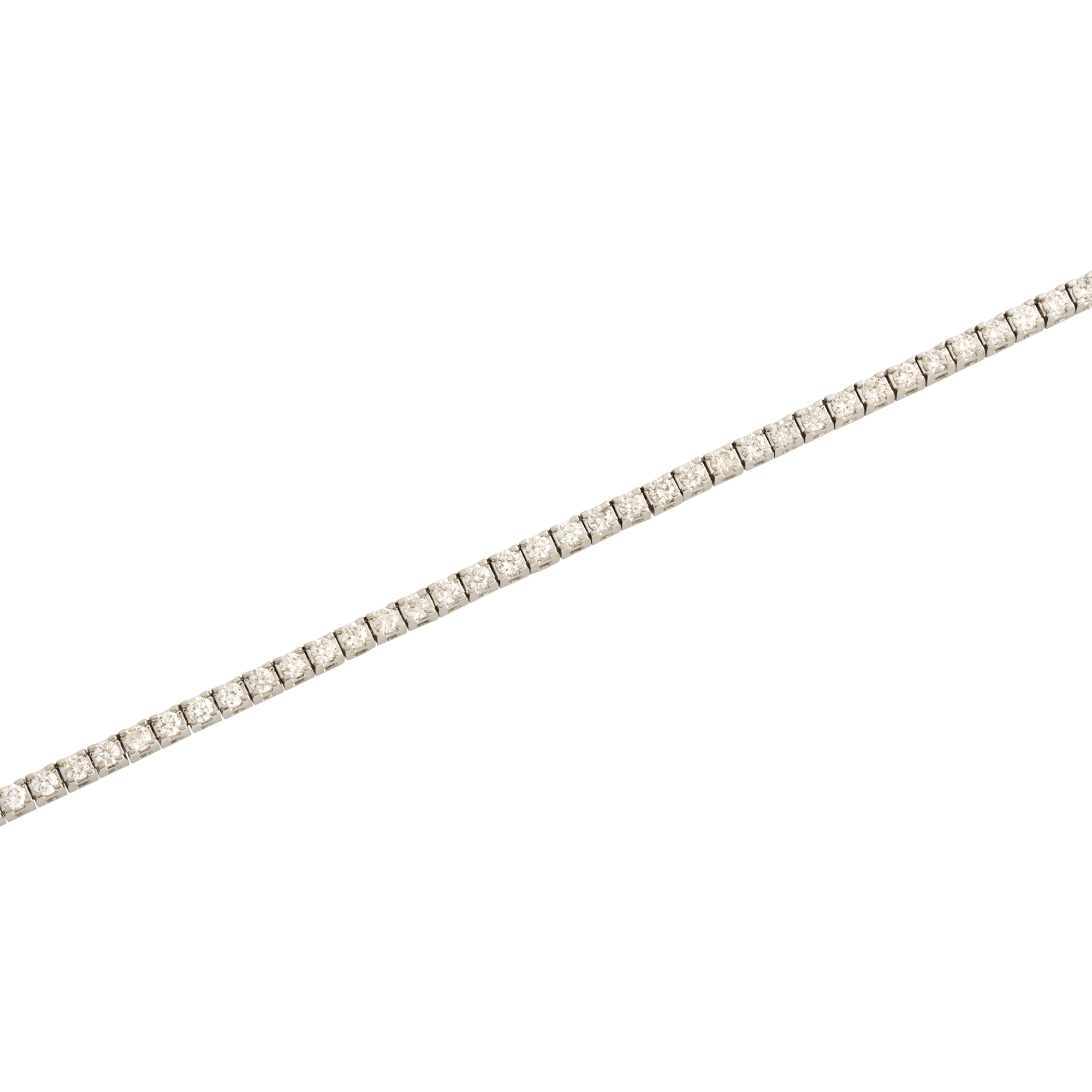 Modelled as a continuous line of one hundred and sixty-five claw-set round brilliant-cut diamonds together weighing approximately 4.90 carats, completed by a concealed tongue and groove clasp, length 400mm, gross weight approximately 18.1 grams.