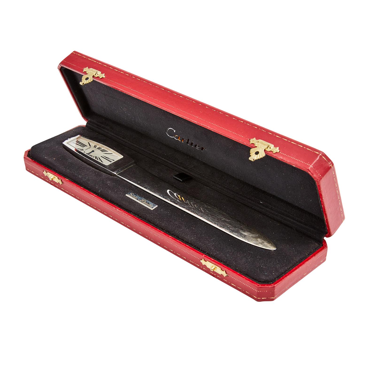 CARTIER: A STAINESS STEEL TIMEPIECE LETTER OPENER