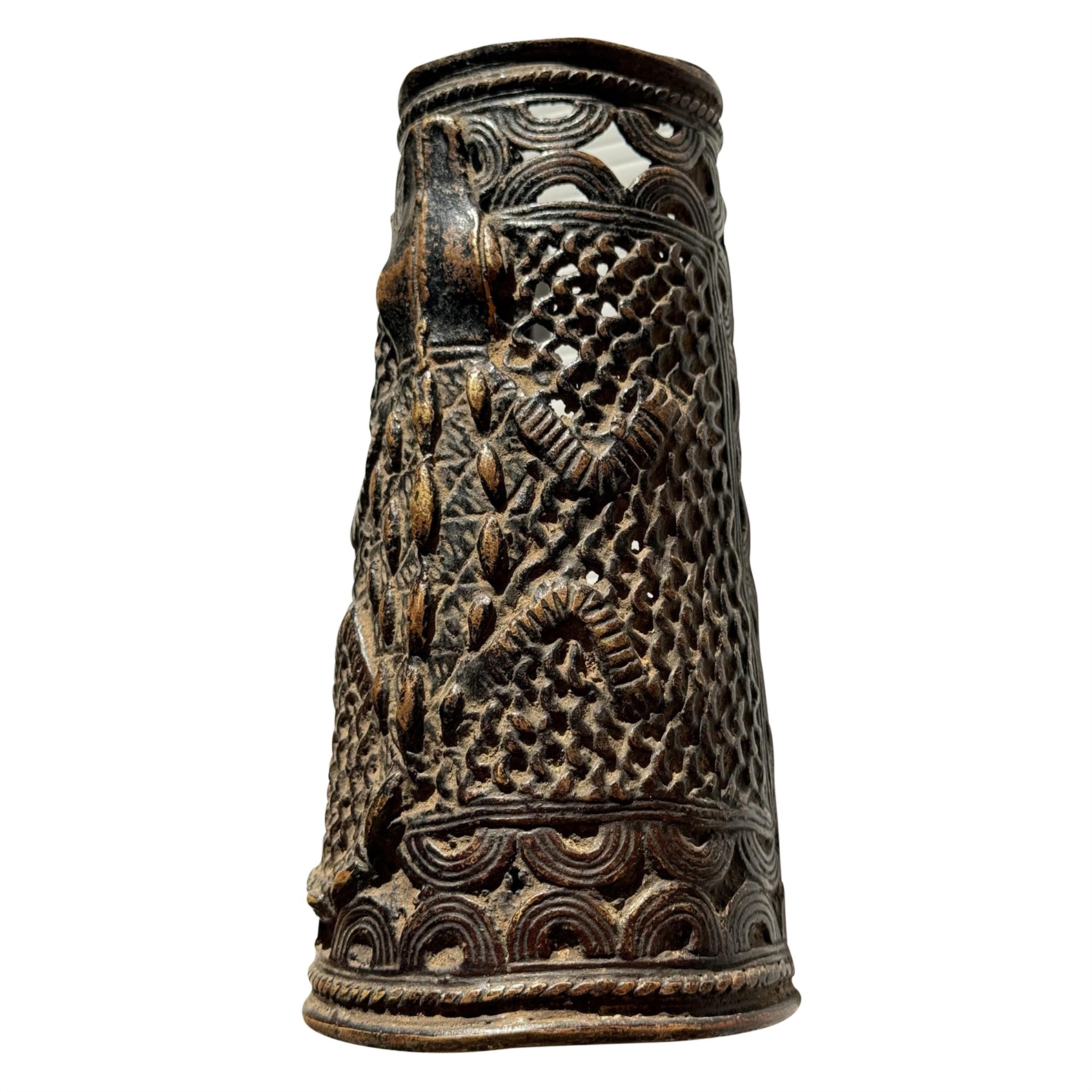 Of openwork with a crocodile in low relief in the middle, the whole with dark patina and signs of wear.