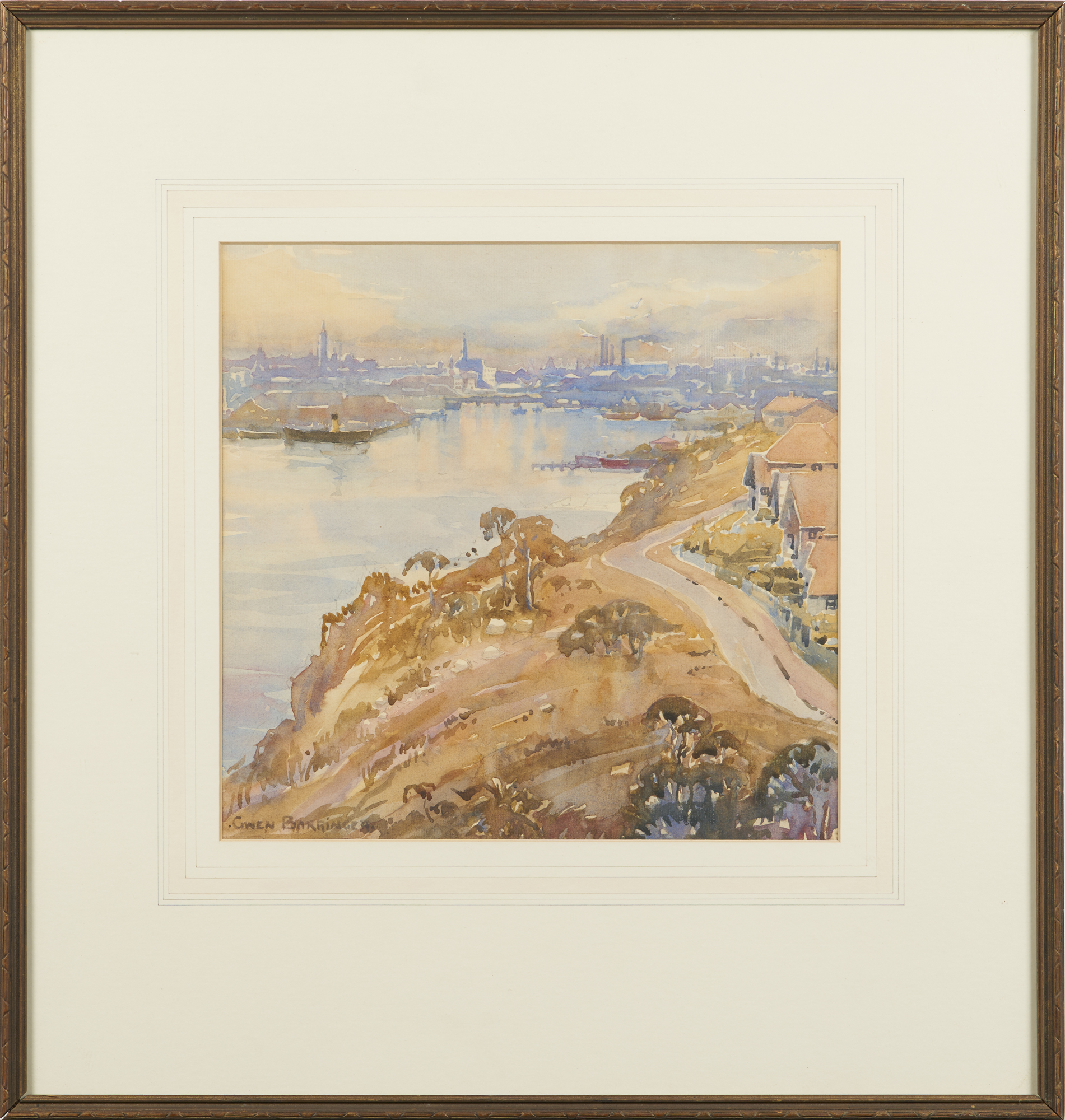 VIDA LAHEY (1882-1968) Brisbane to Southbank c.1930 oil on plywood 24.5 x 29.5cm