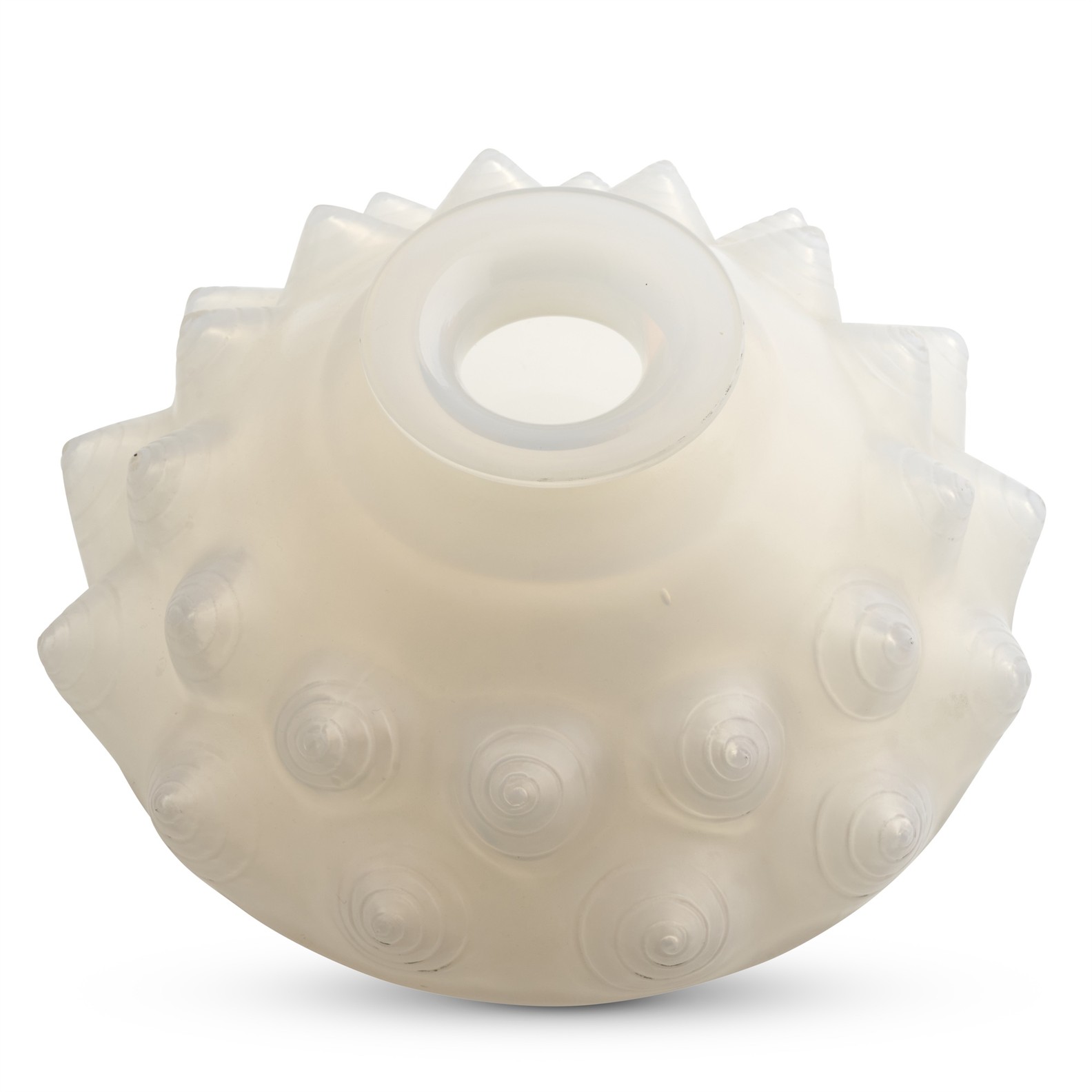 Tapering with a flat wide rim, moulded with two rows of snail shells circling the body, in opalescent glass, script-etched 'R. Lalique France No. 1001' and moulded 'R. LALIQUE'