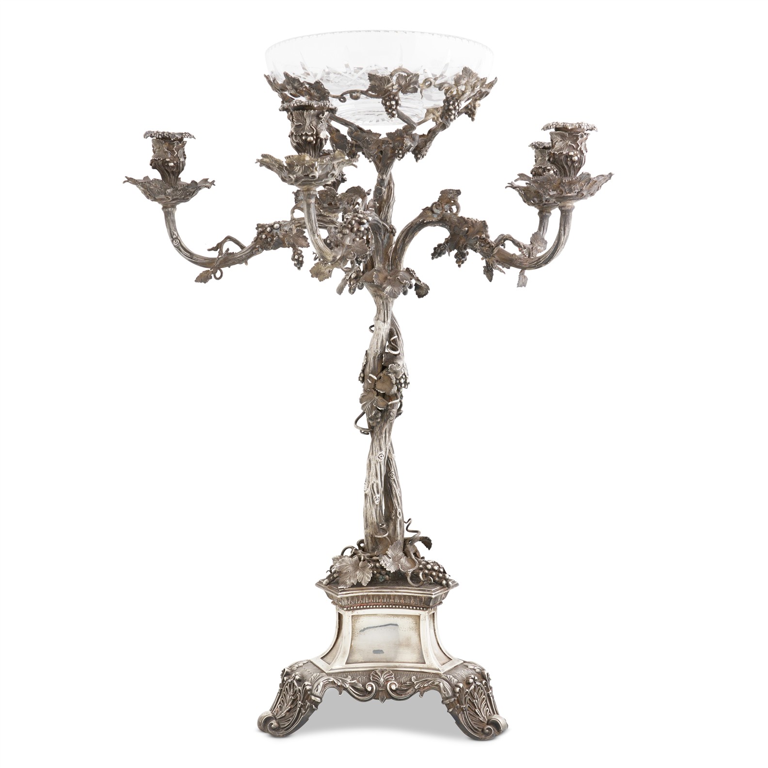 AN IMPRESSIVE LARGE VICTORIAN STERLING SILVER CENTREPIECE EPERGNE CANDELABRUM