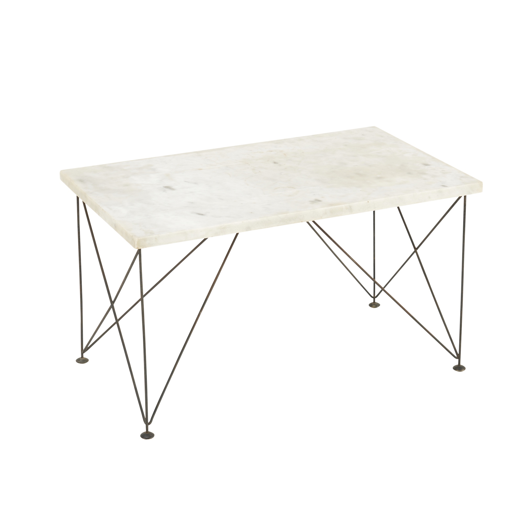 Rectangular marble top on black painted metal legs.