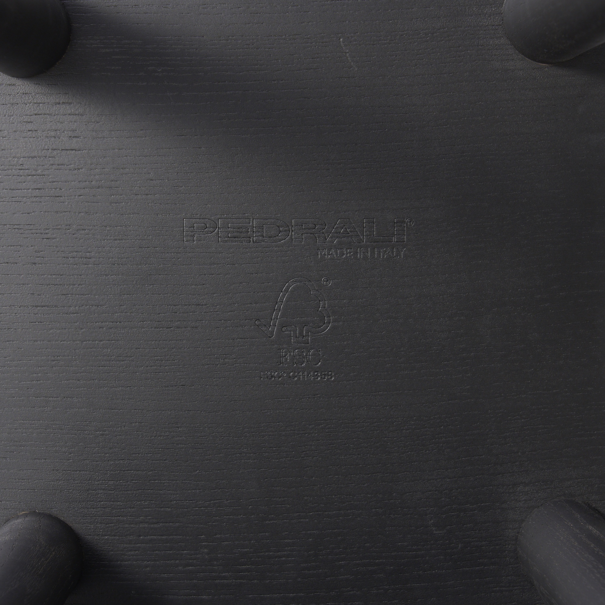 Black stained wood with aluminium footrest.