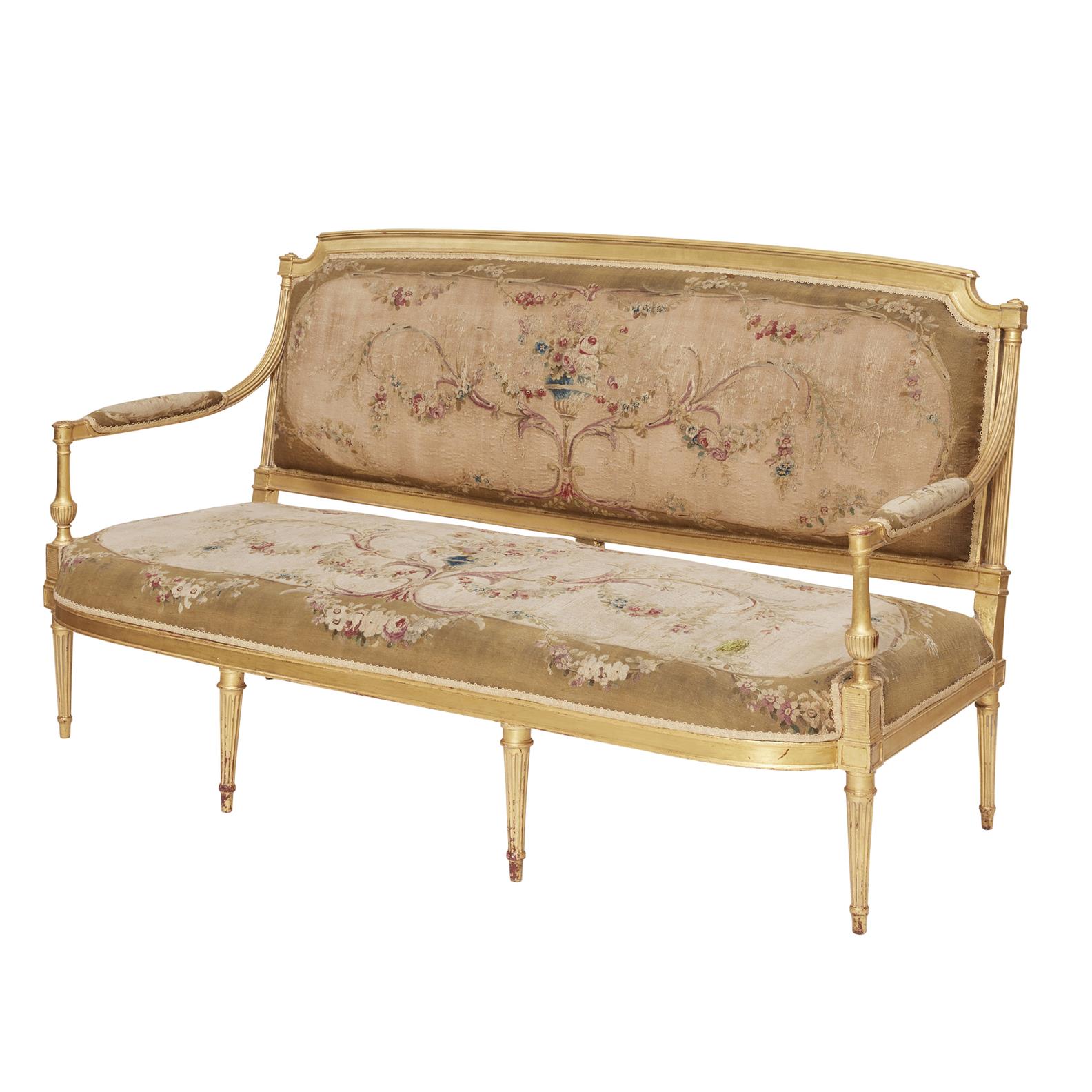 A LOUIS XVI STYLE GILTWOOD AND AUBUSSON SALON SUITE