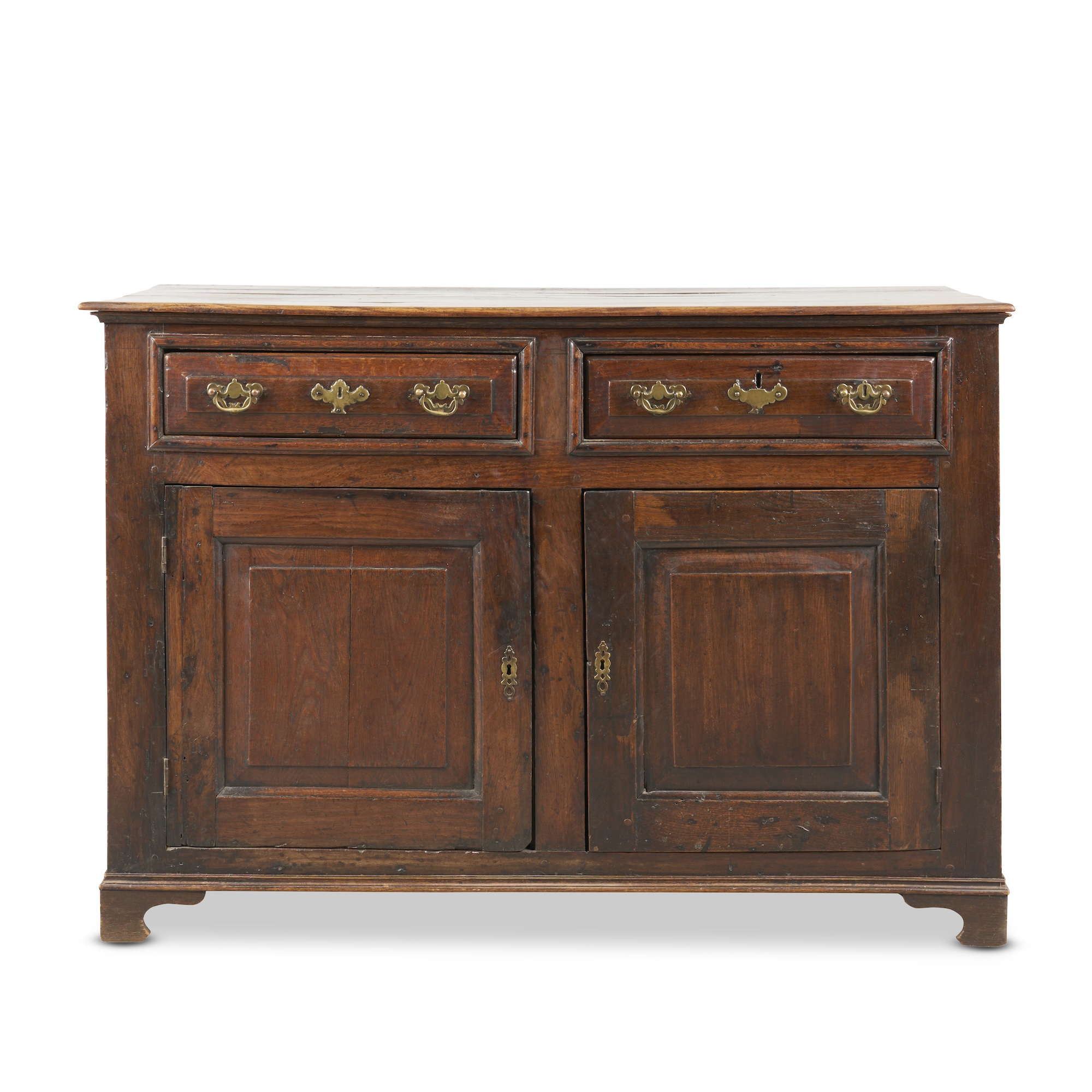 A GEORGE II OAK ENCLOSED LOW DRESSER