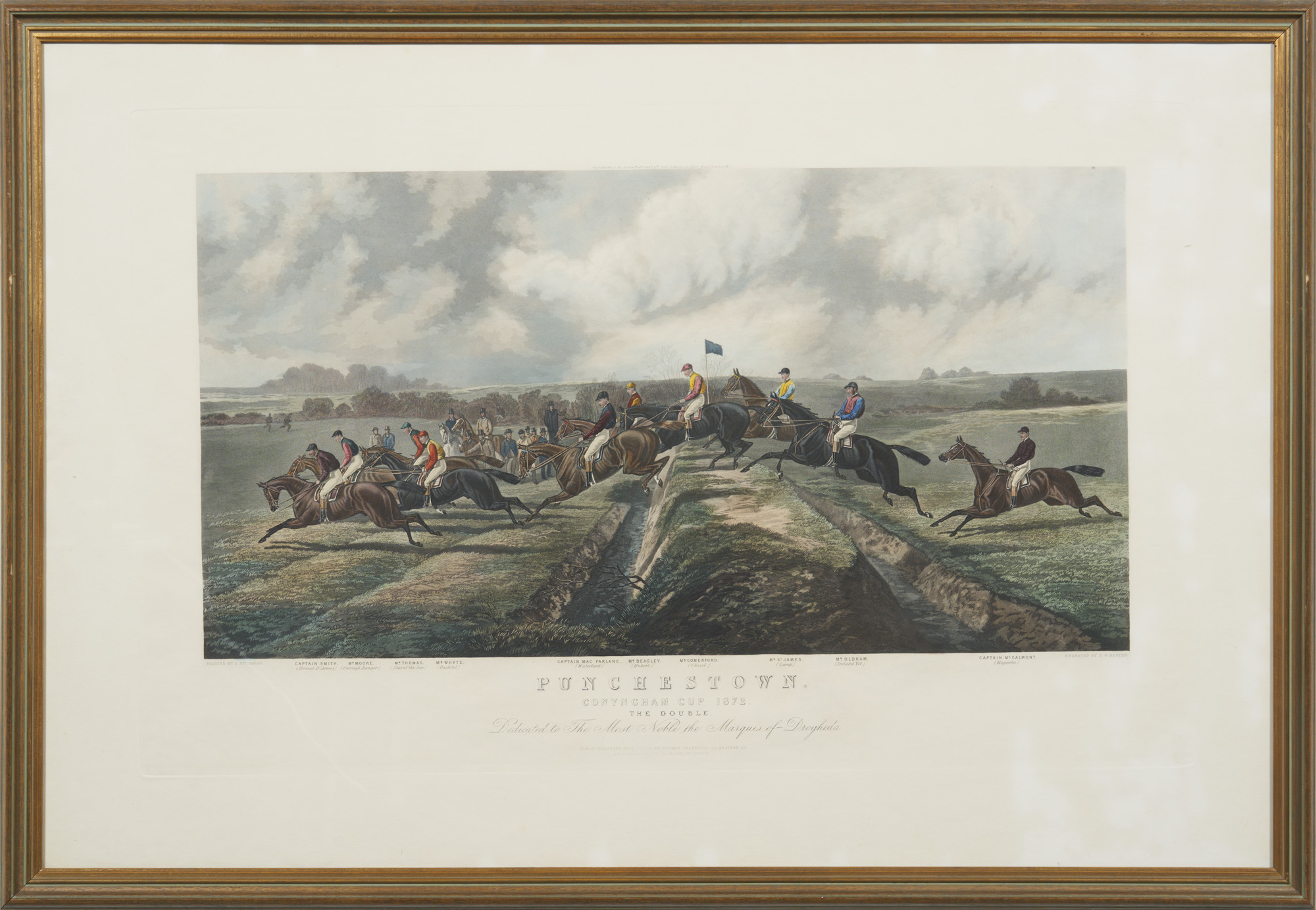 A set of four: 'Punchestown, Conyngham Cup, 1872' – 'The start', 'The double', 'The stone wall', and 'The finish'