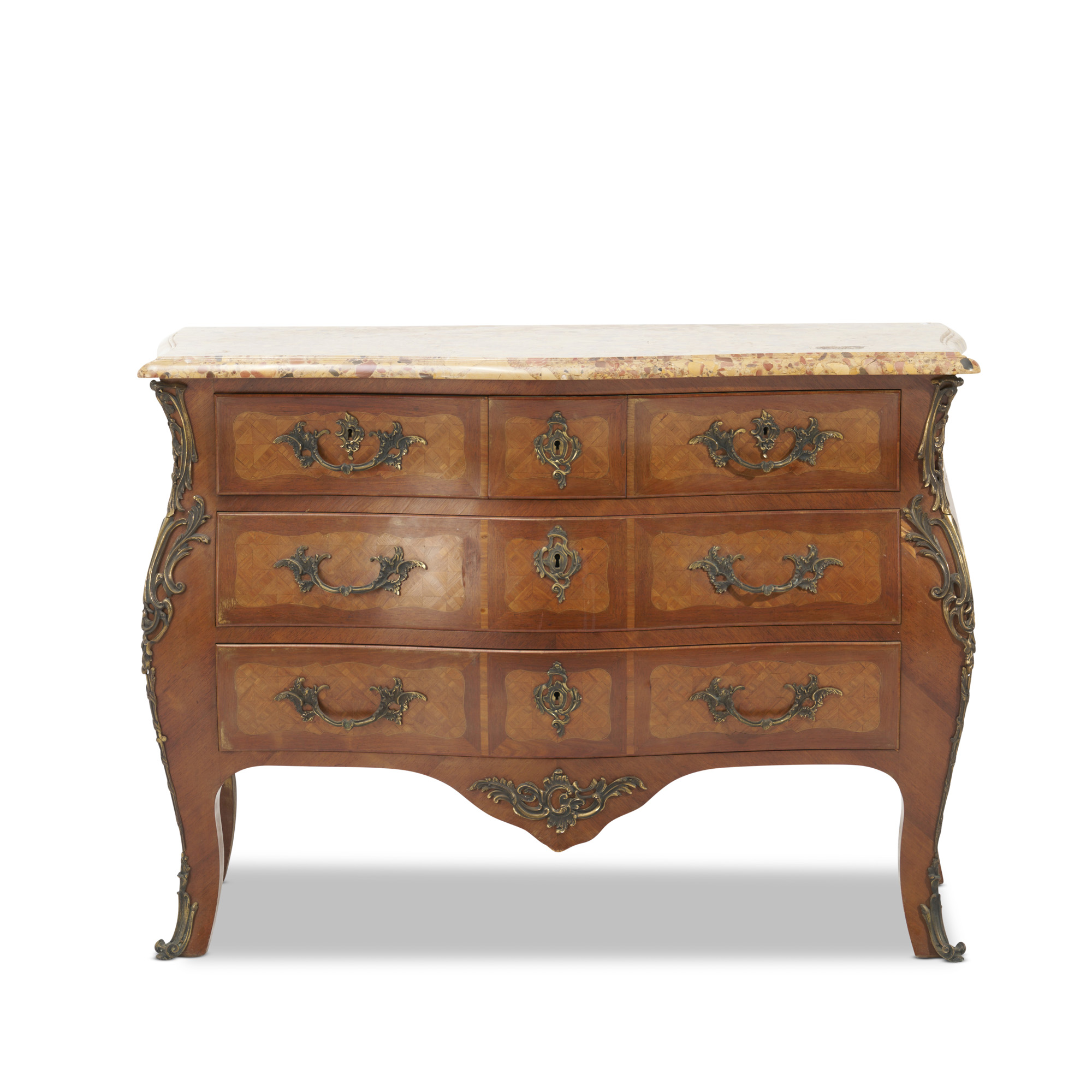 A LOUIS XV-STYLE ROSEWOOD MARQUETRY COMMODE