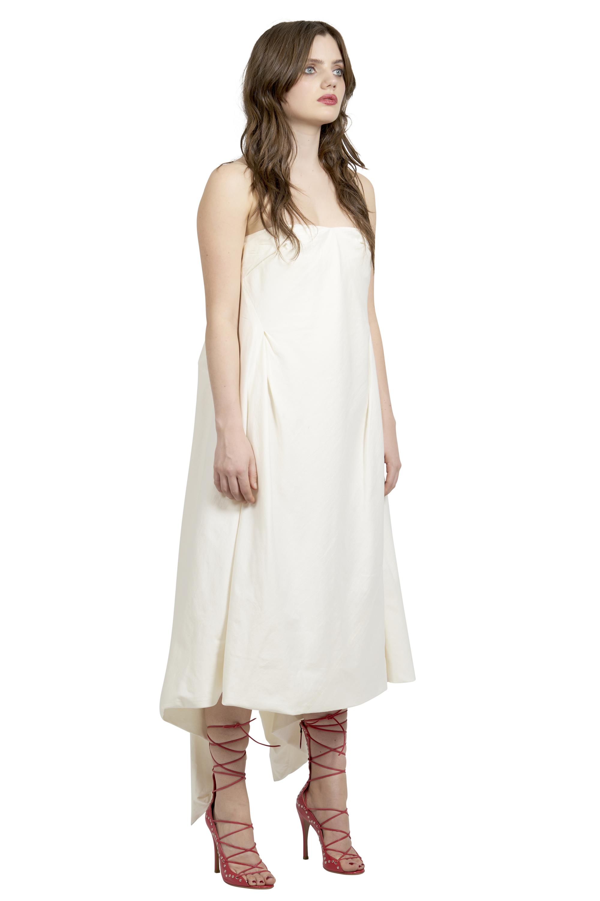 Styled in white cotton designed with internal corsetry and assymetrical hemline, marked size IT40.