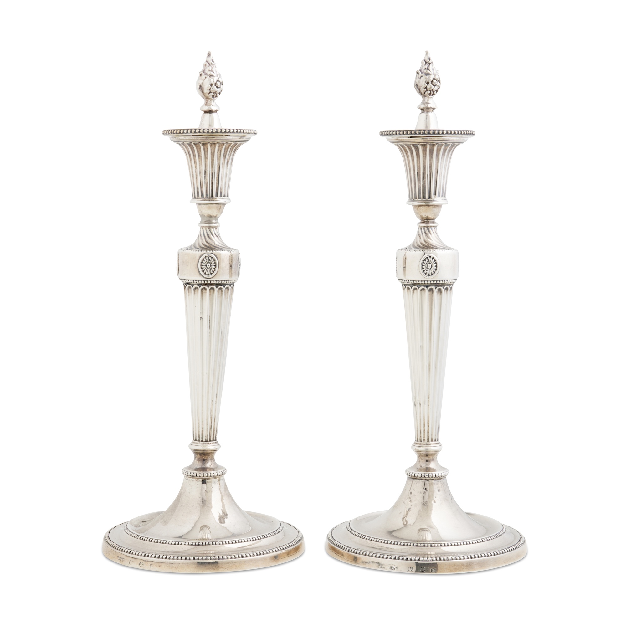 A PAIR OF GEORGE III STERLING SILVER CANDLESTICKS