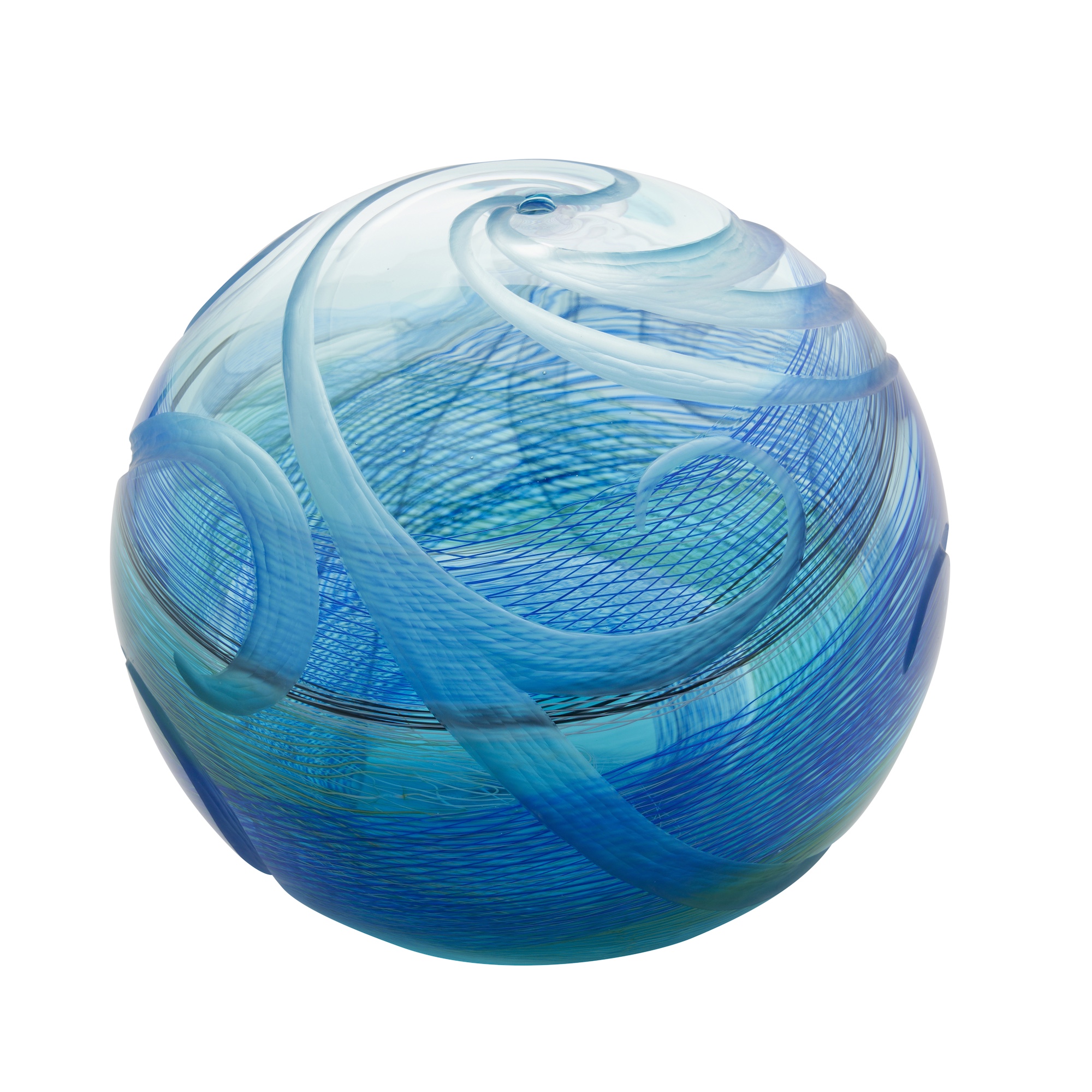 Of spherical form. Blown and cold worked glass with filligrana in shades of blue. Signed dated and numbered lower edge.