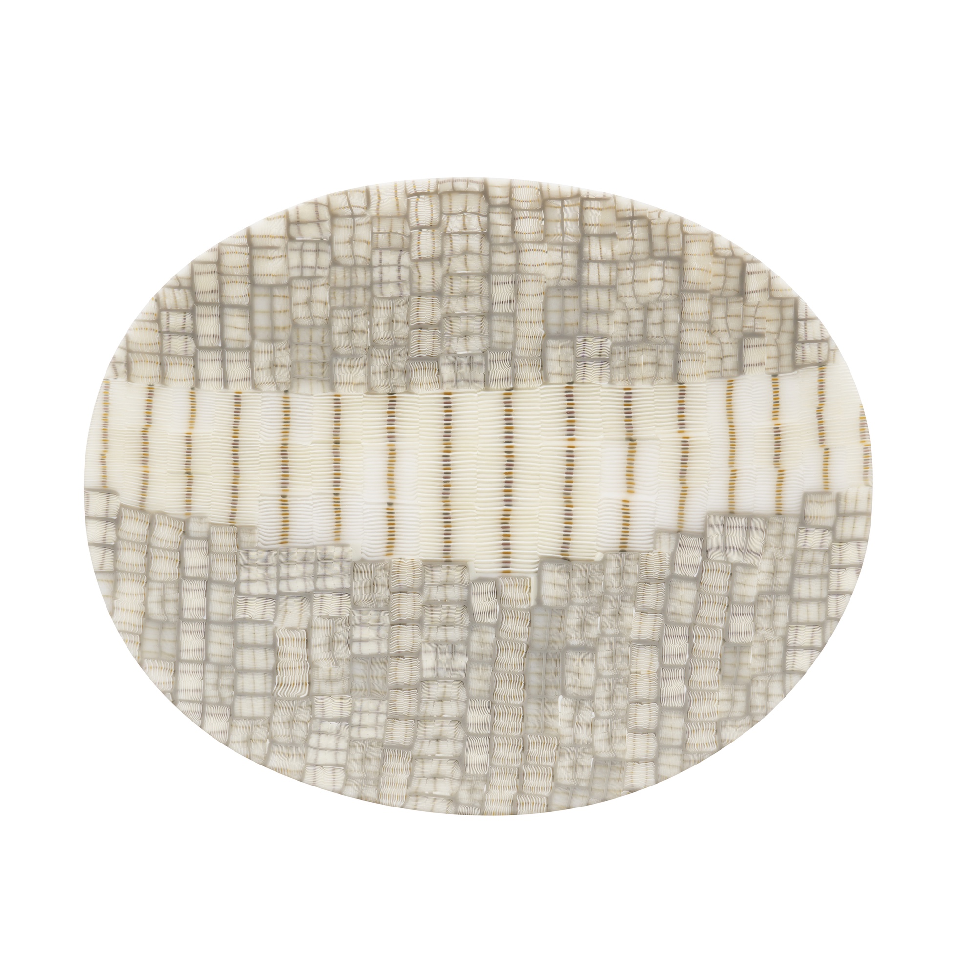 Of shallow organic form. Cold assembled and hot formed murrini glass. Signed and dated '96 to verso edge.