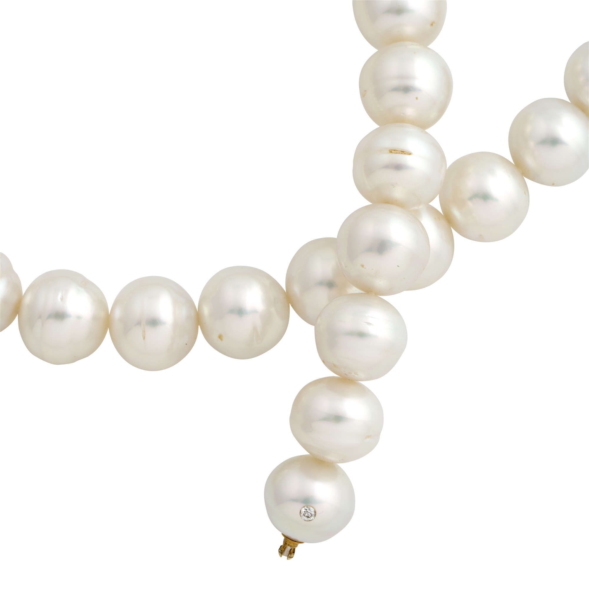 An exceptional circlé collar of thirty-two graduating silver white south sea pearls of approximately 14.00mm to 16.60mm to an integrated pearl clasp with an embedded diamond, length approximately 450mm, gross weight approximately 142.0 grams.
