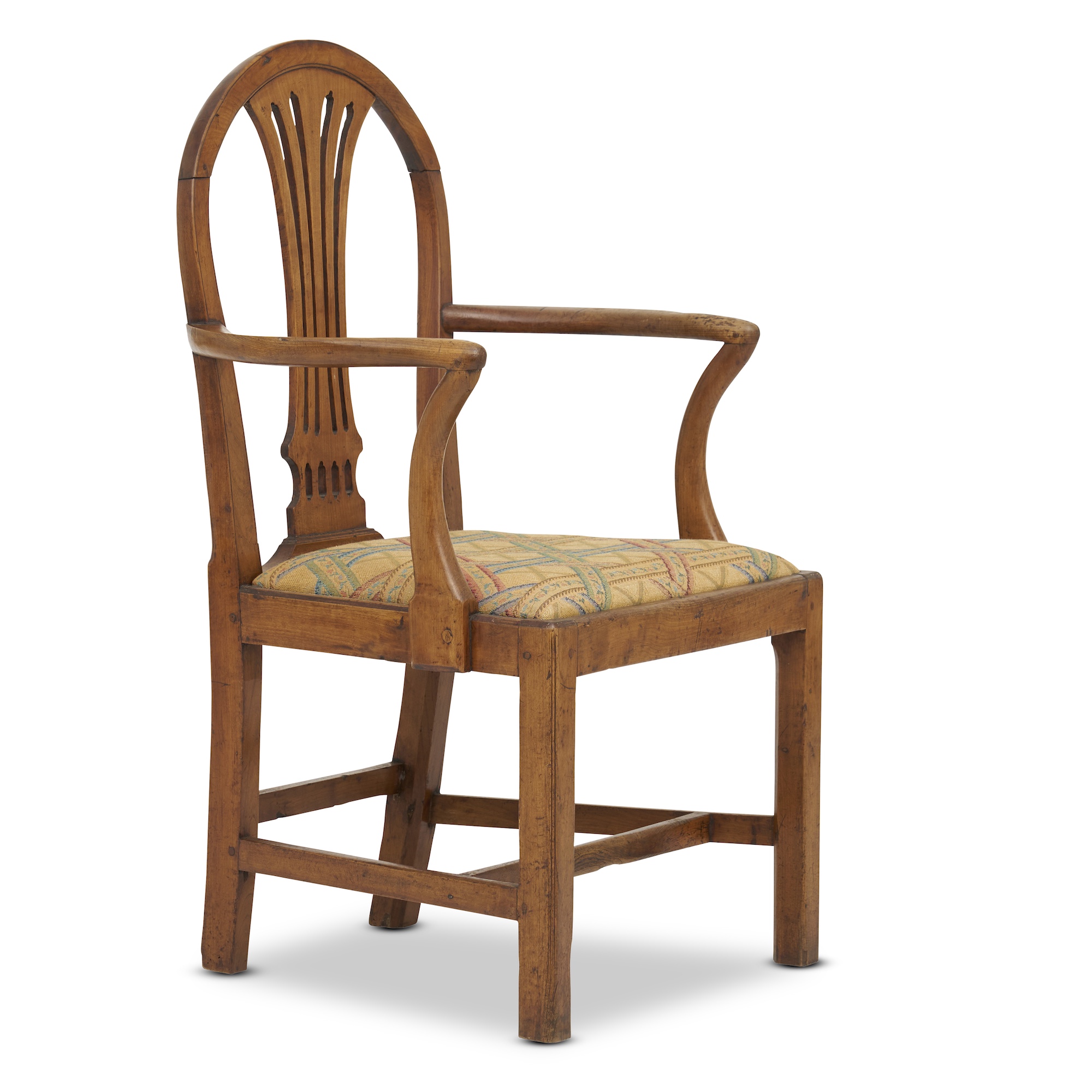 A GEORGE III FRUITWOOD ELBOW CHAIR