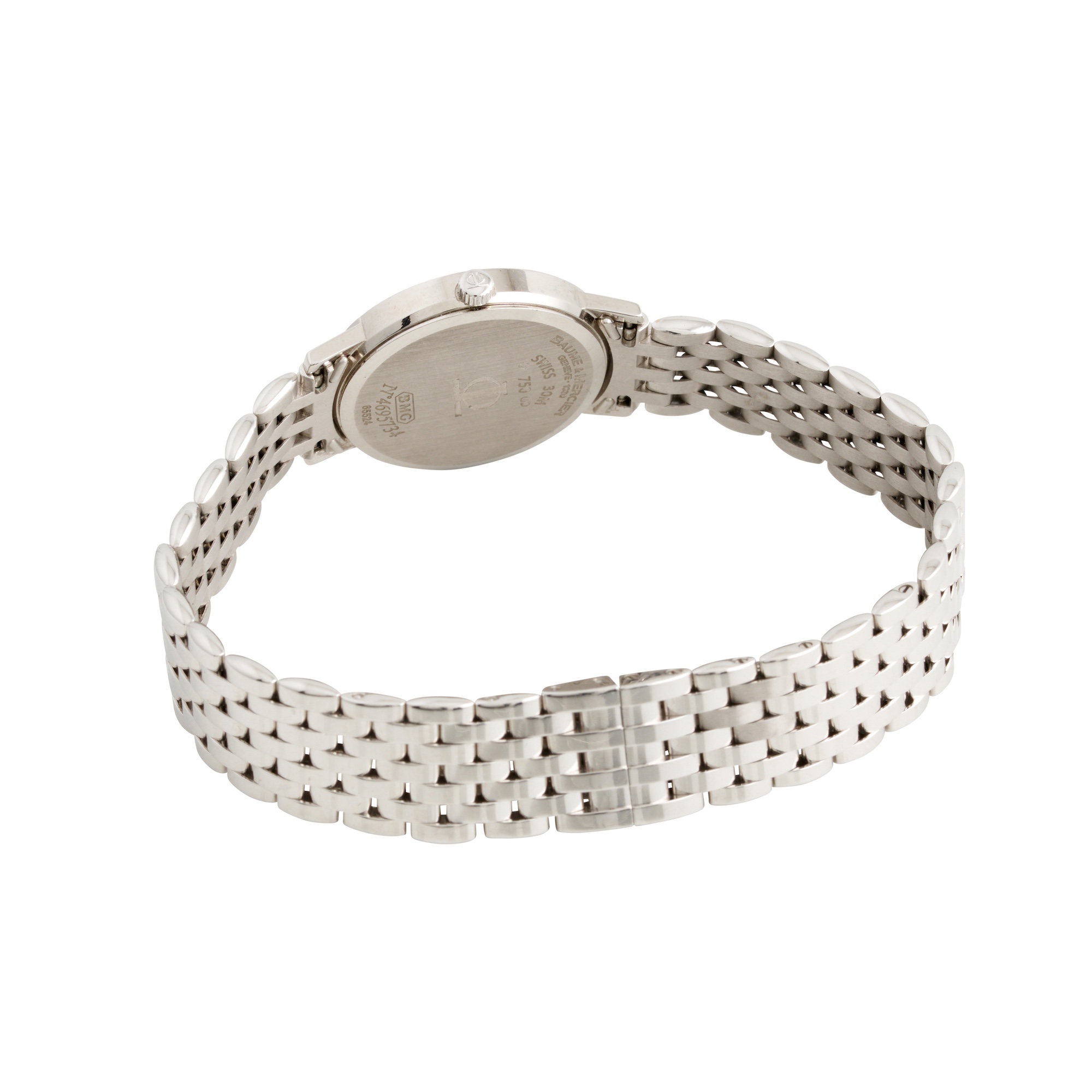 Closure: Baume & Mercier 18ct white gold brick link bracelet and double folding clasp