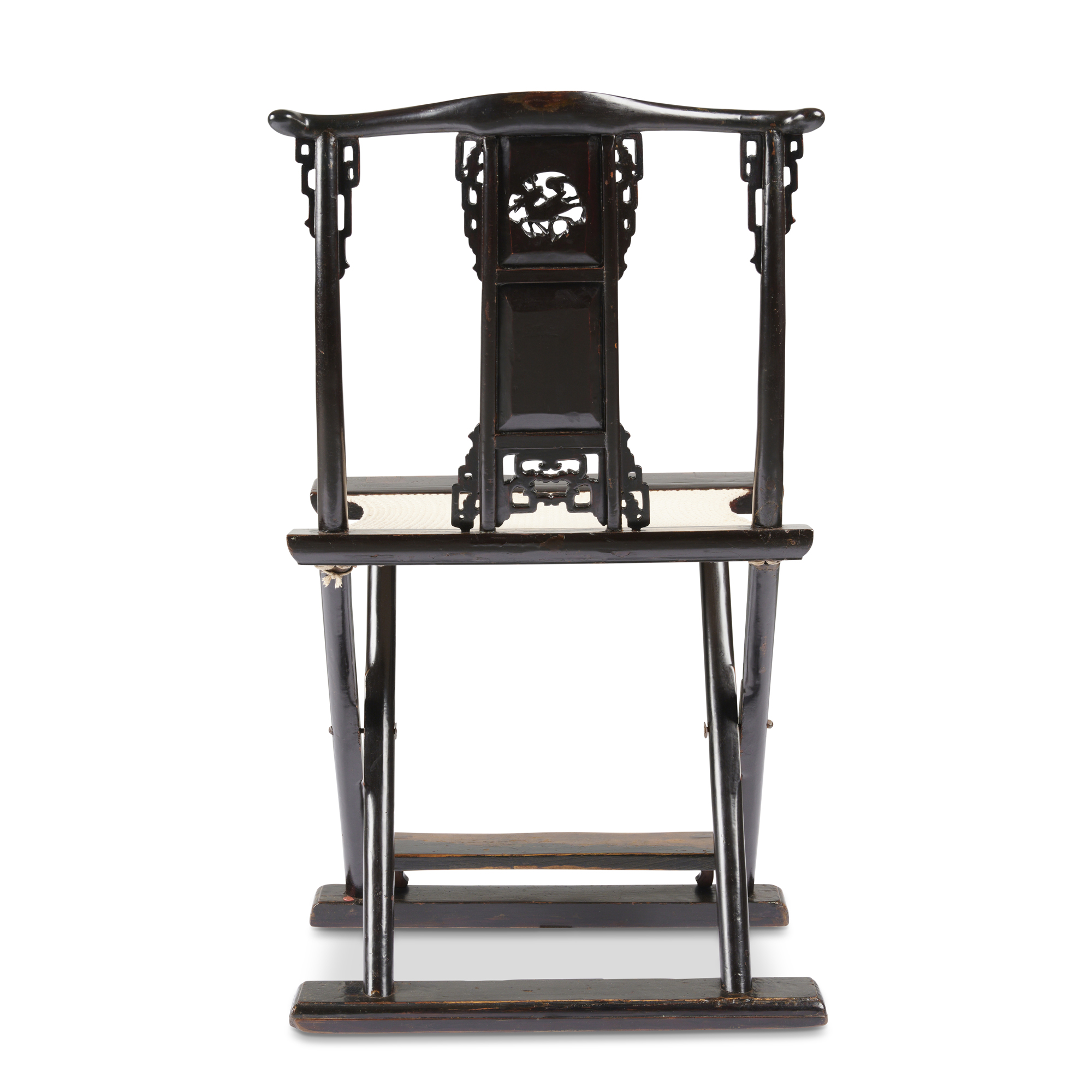 A CHINESE BLACK LACQUER AND CARVED FOLDING CHAIR, QING DYNASTY, 18TH/19TH CENTURY
