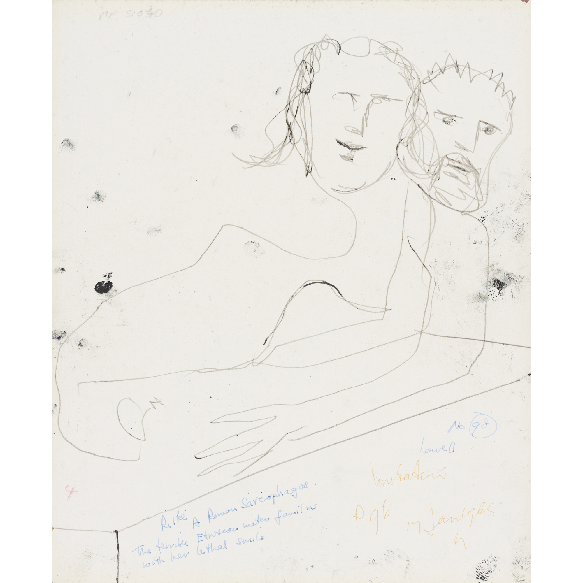 SIDNEY NOLAN (1917-1992) (Shakespeare Sonnets Man and Winged Skull) c.1963 mixed media on paper 63.5 x 52cm