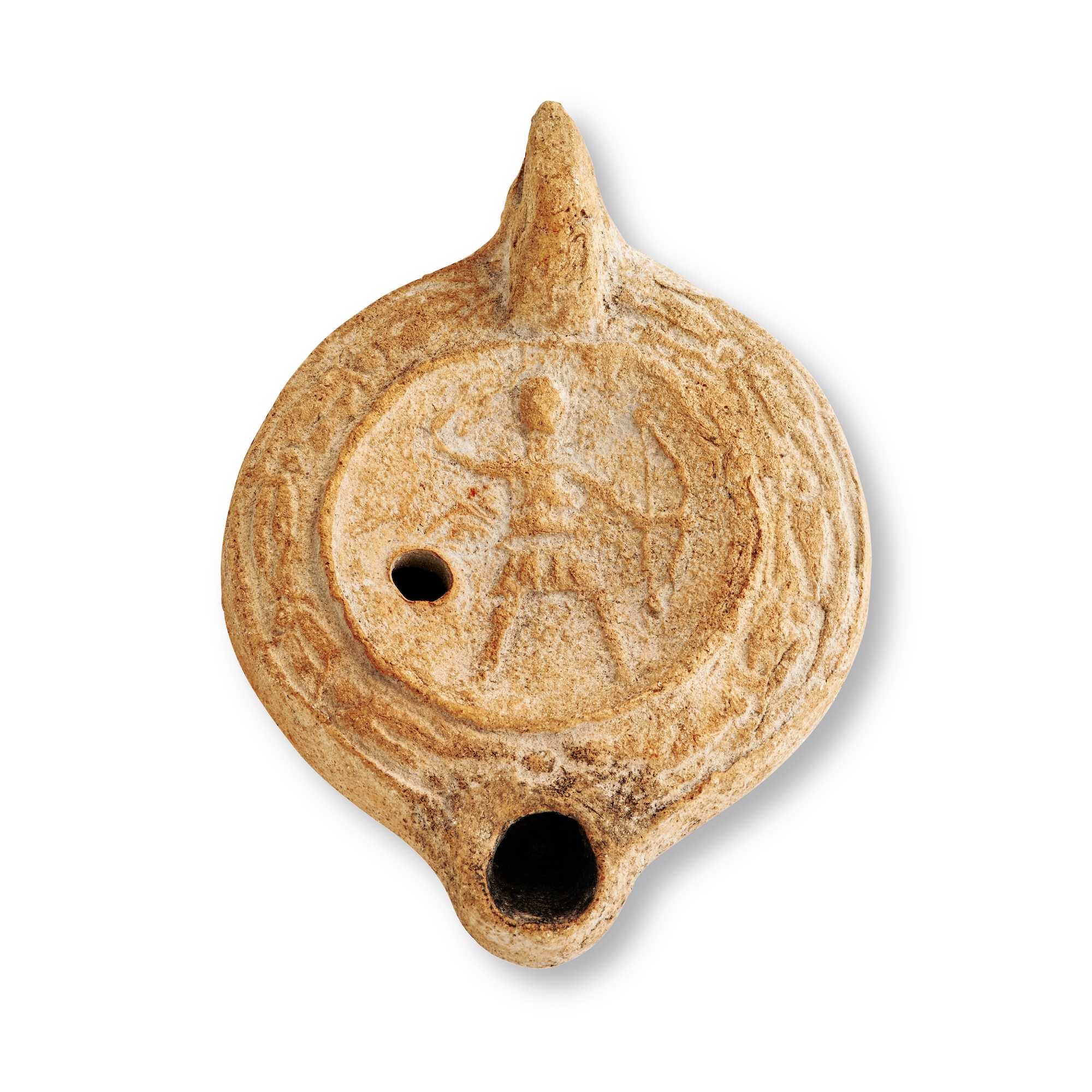 A SMALL ROMAN TERRACOTTA OIL LAMP