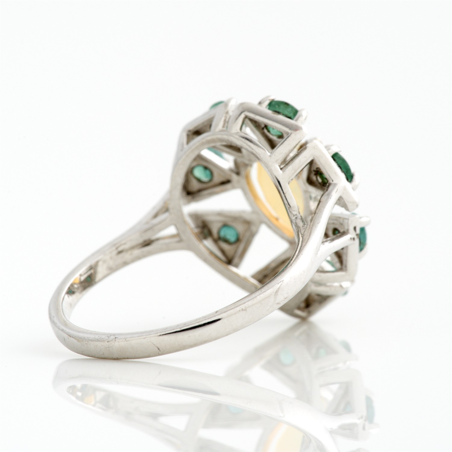 AN OPAL AND EMERALD RING IN STERLING SILVER, SIZE P