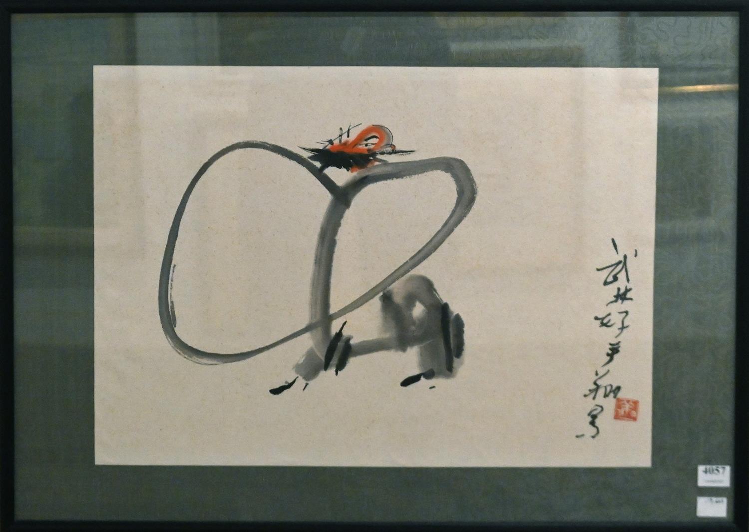 TWO INK PAINTINGS, STAMPED WITH ARTIST SEAL LOWER RIGHT, 32.5 X 45CM (LARGEST), FRAME SIZE: 44.5 X 60 (LARGEST)