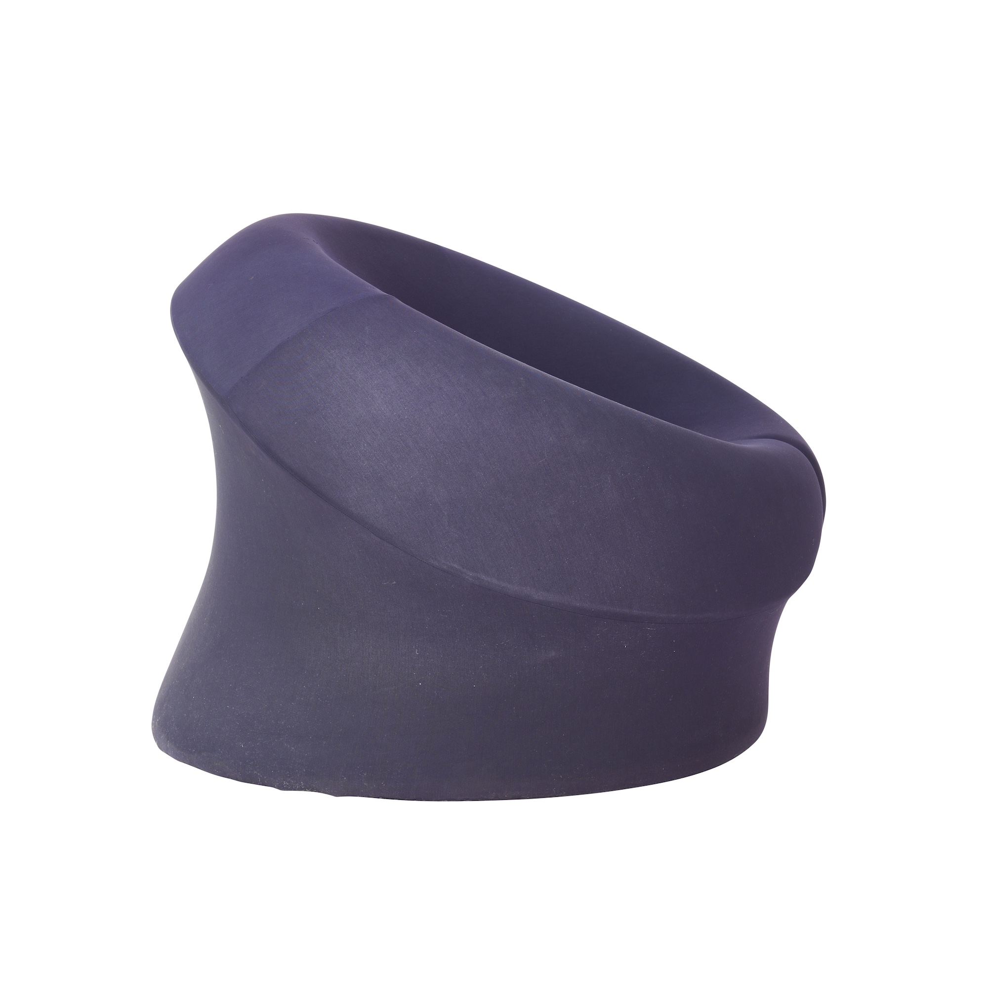 Sculptural organic form in foam with purple stretch upholstery. Manufacturer mark to underside.