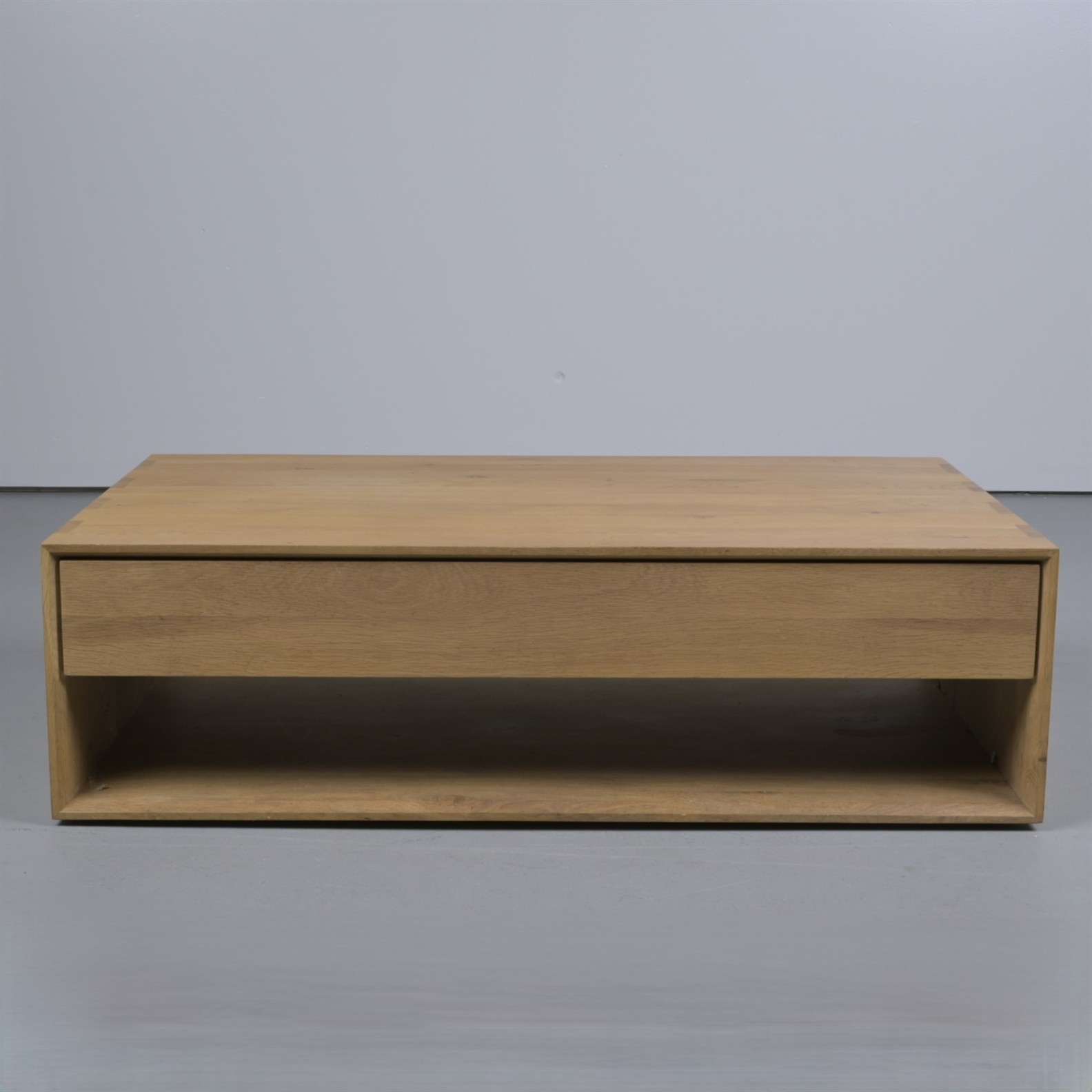 A CONTEMPORARY HARDWOOD COFFEE TABLE (36CM H X 120CM W X 21CM D)