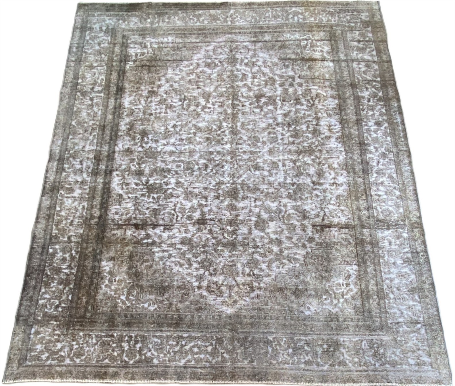 VINTAGE PILE. CREATED FROM AN ORIGINAL HAND-KNOTTED ALL-OVER PALMETTE-DESIGN TABRIZ CARPET OVER-DYED IN EARTHY SHADES OF CARAMEL & CHOCOLATE.