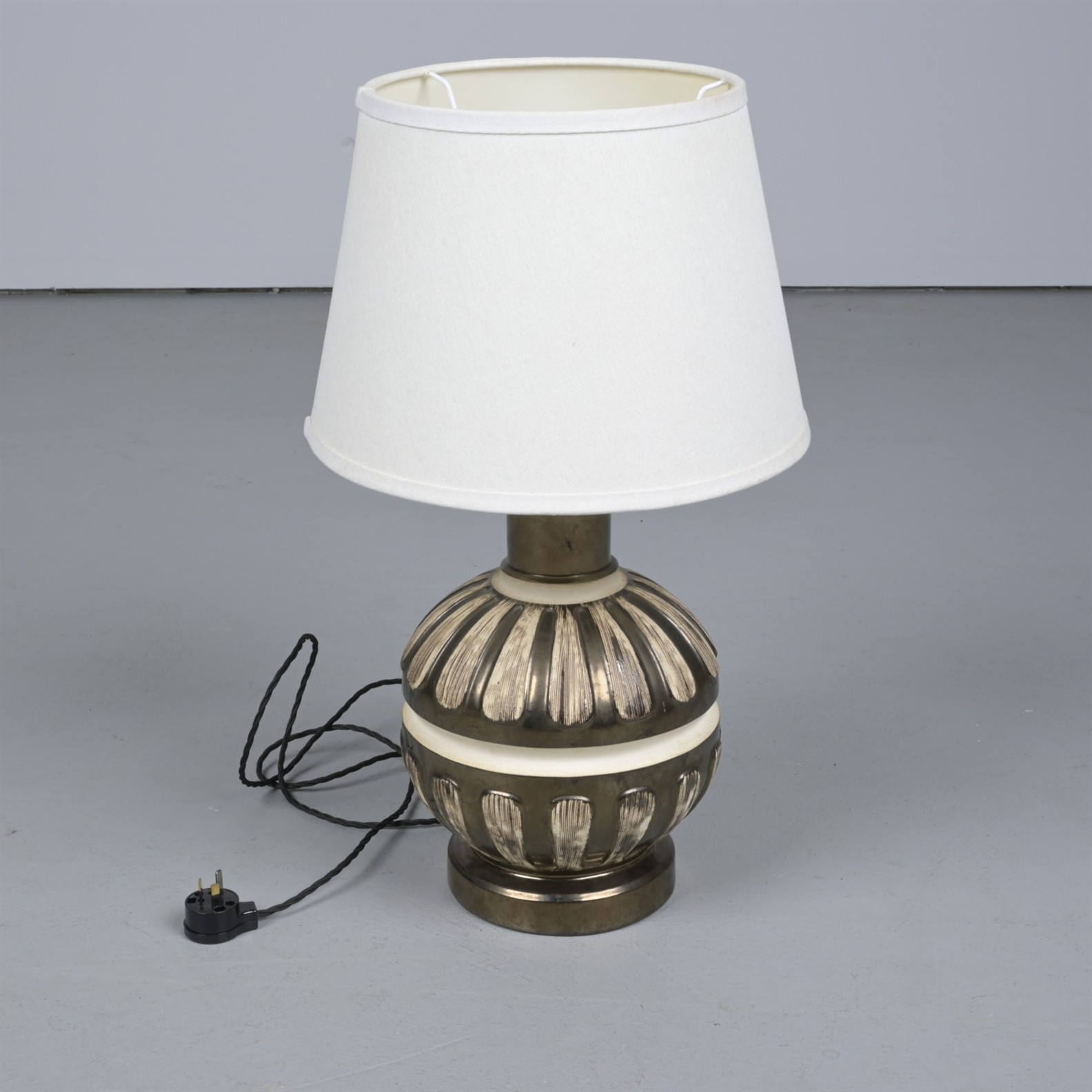 A CERAMIC TABLE LAMP (43CM H X 38CM DIA)