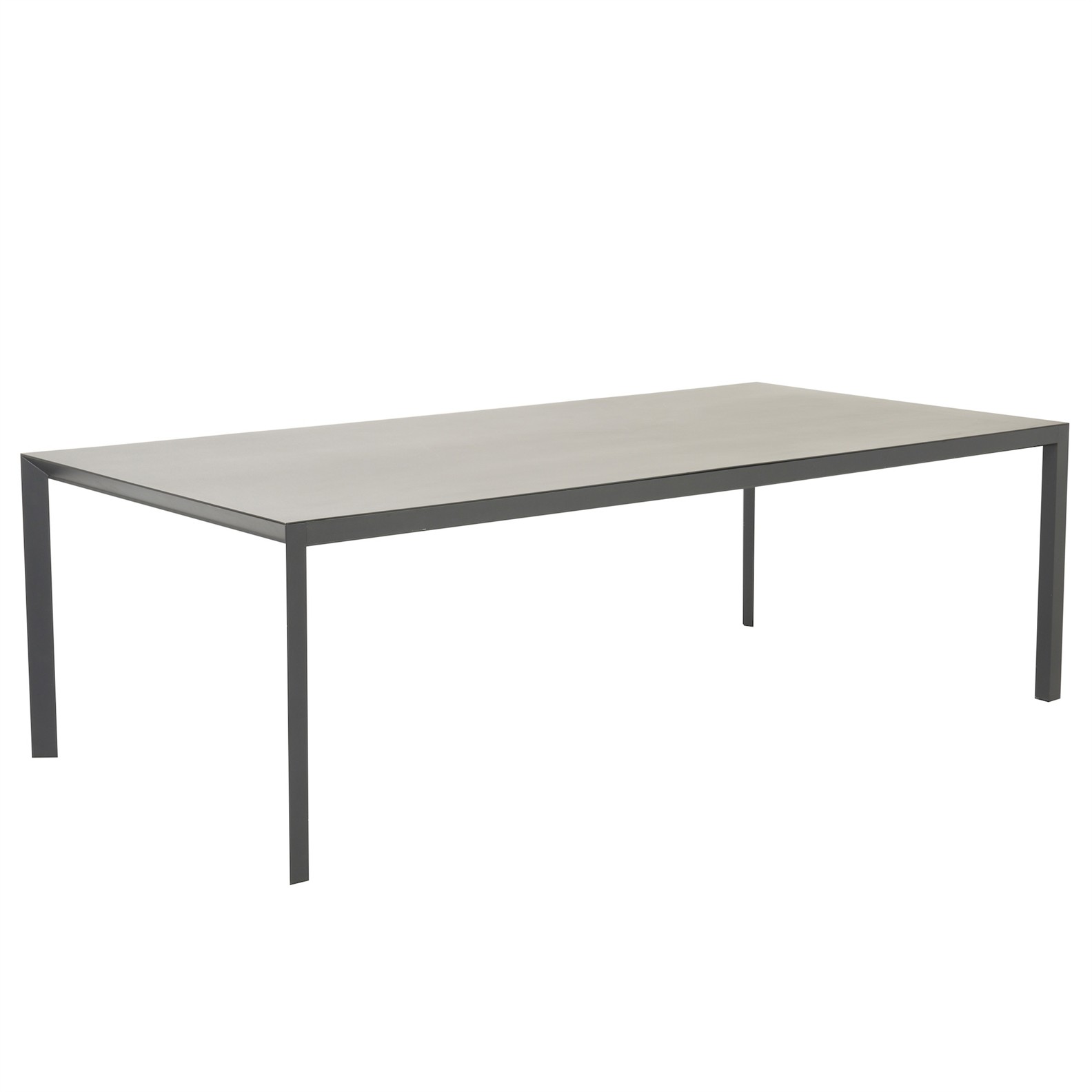 Aluminium with matt charcoal finish on triangular section legs.