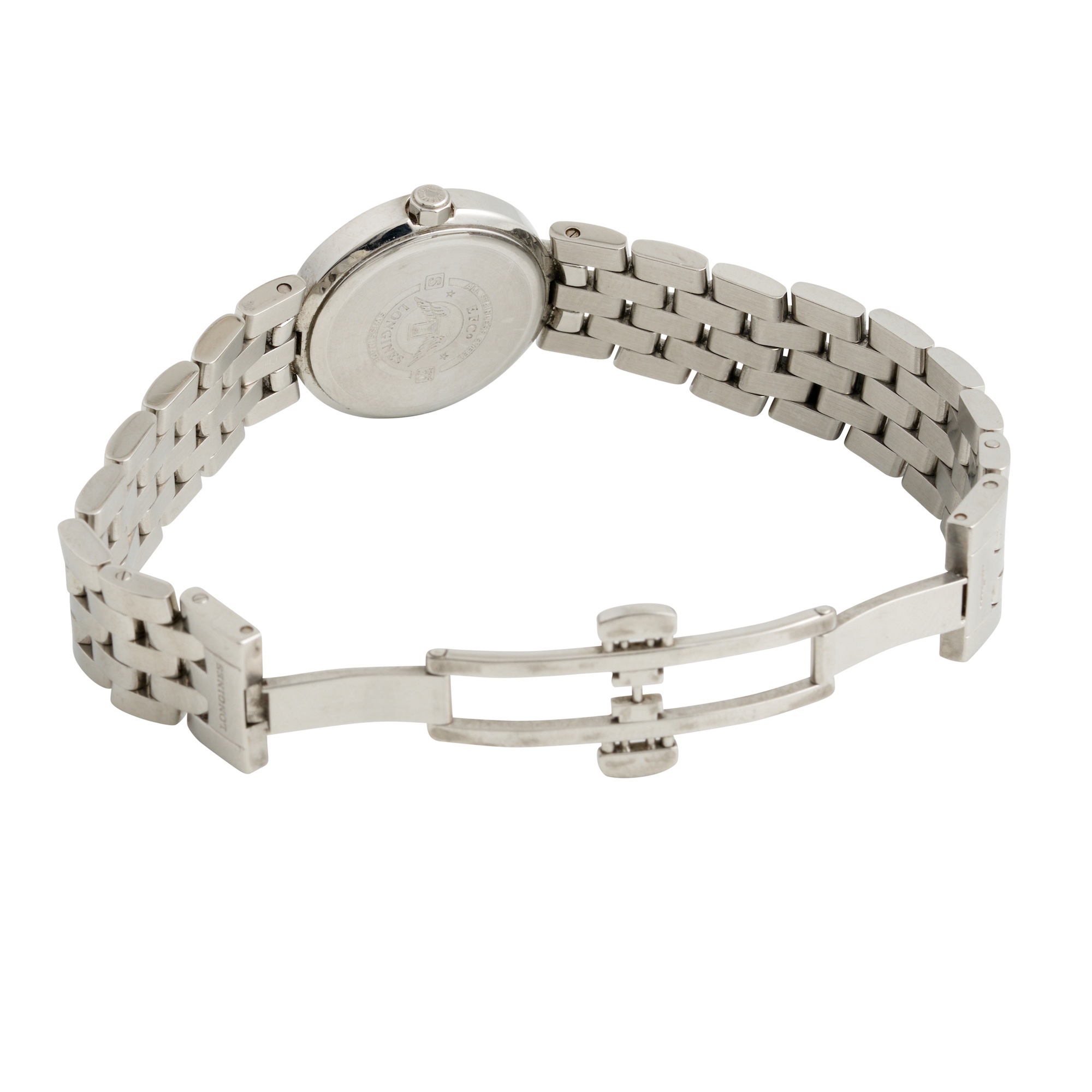 Closure: Longines fitted polished brick link bracelet and double folding clasp