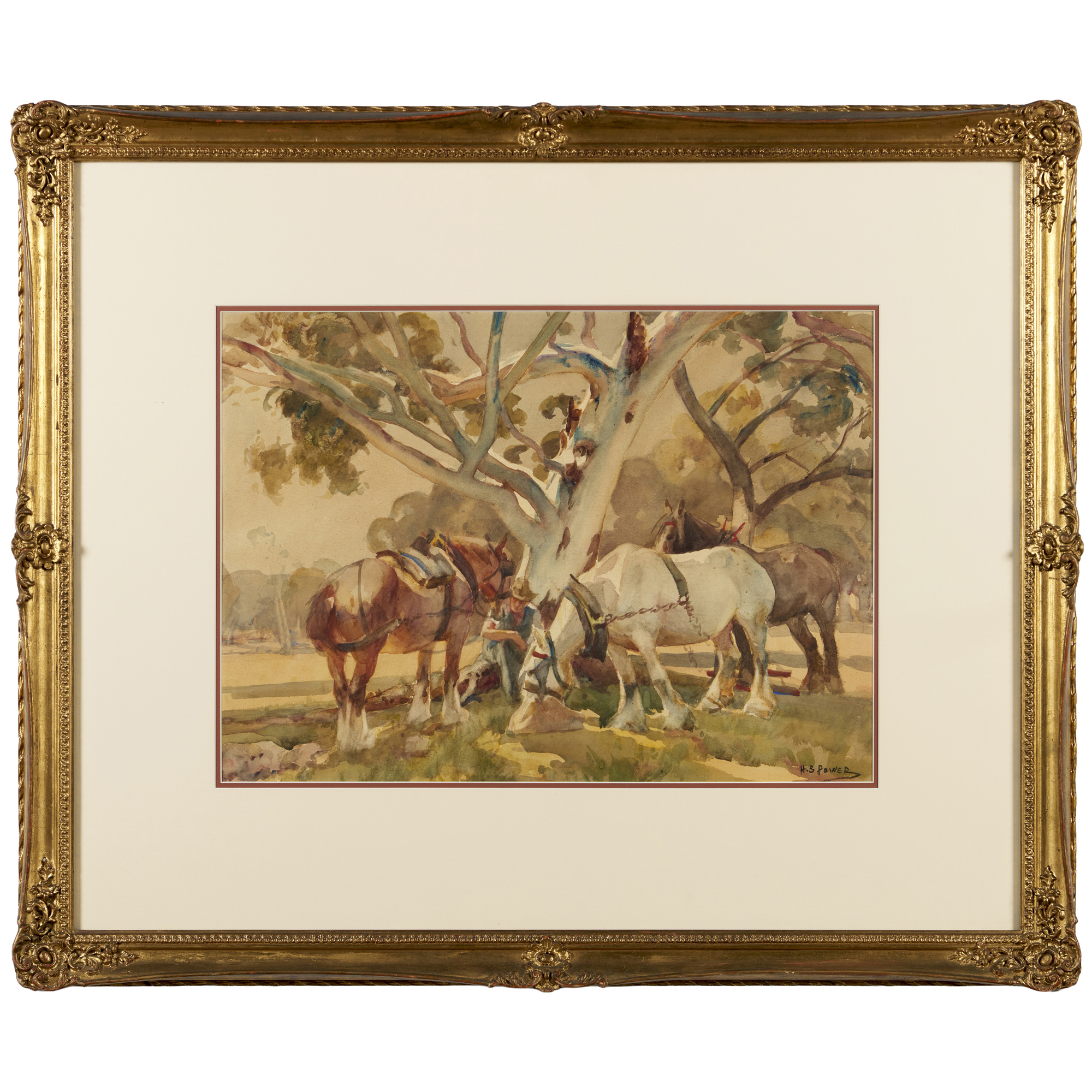 HUGH SAWREY (1923-1999) Running the Station Horses, Western Queensland oil on canvas 81.5 x 120cm