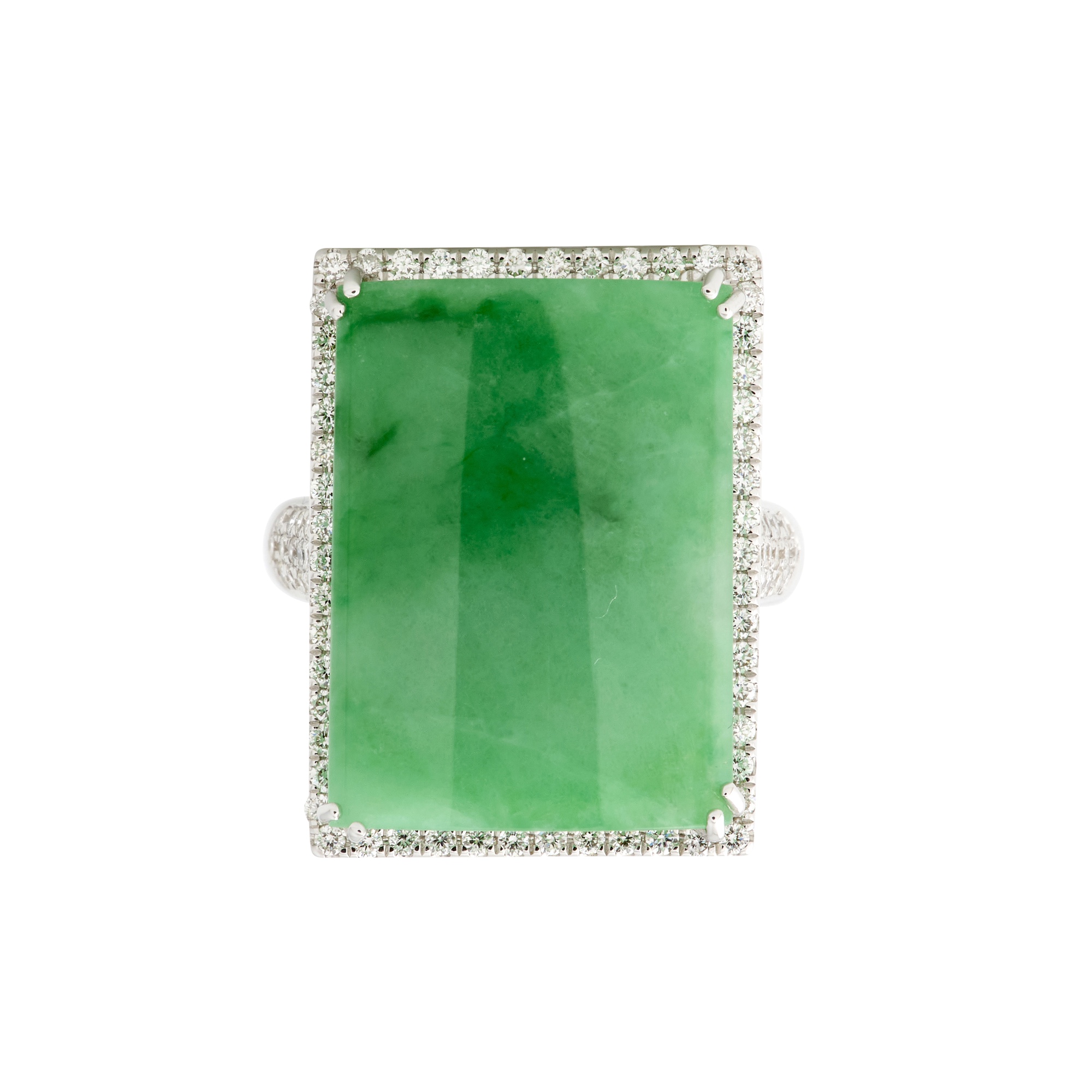 18CT WHITE GOLD JADE AND DIAMOND RING