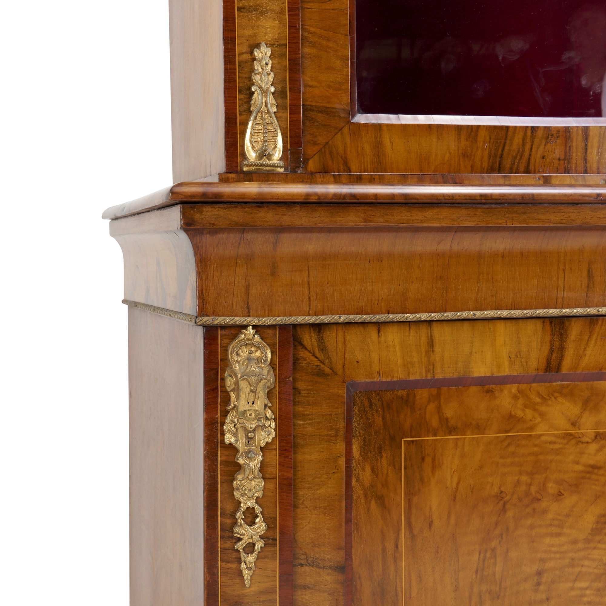 A VICTORIAN GILT METAL-MOUNTED FIGURED WALNUT BOOKCASE CABINET
