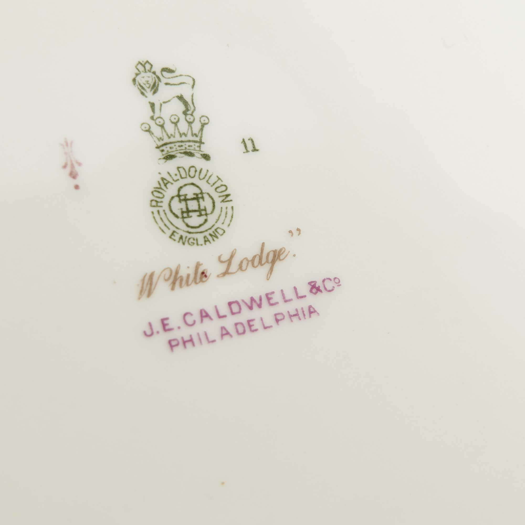 Each indented circular, the wells decorated with scenes in the gardens of various English houses, each signed by Price, the borders with gilt floral and foliate decoration on the ivory ground, painted and printed marks underside including the location of each scene and the name of the retailer, J.E. Caldwell & Co., Philadelphia