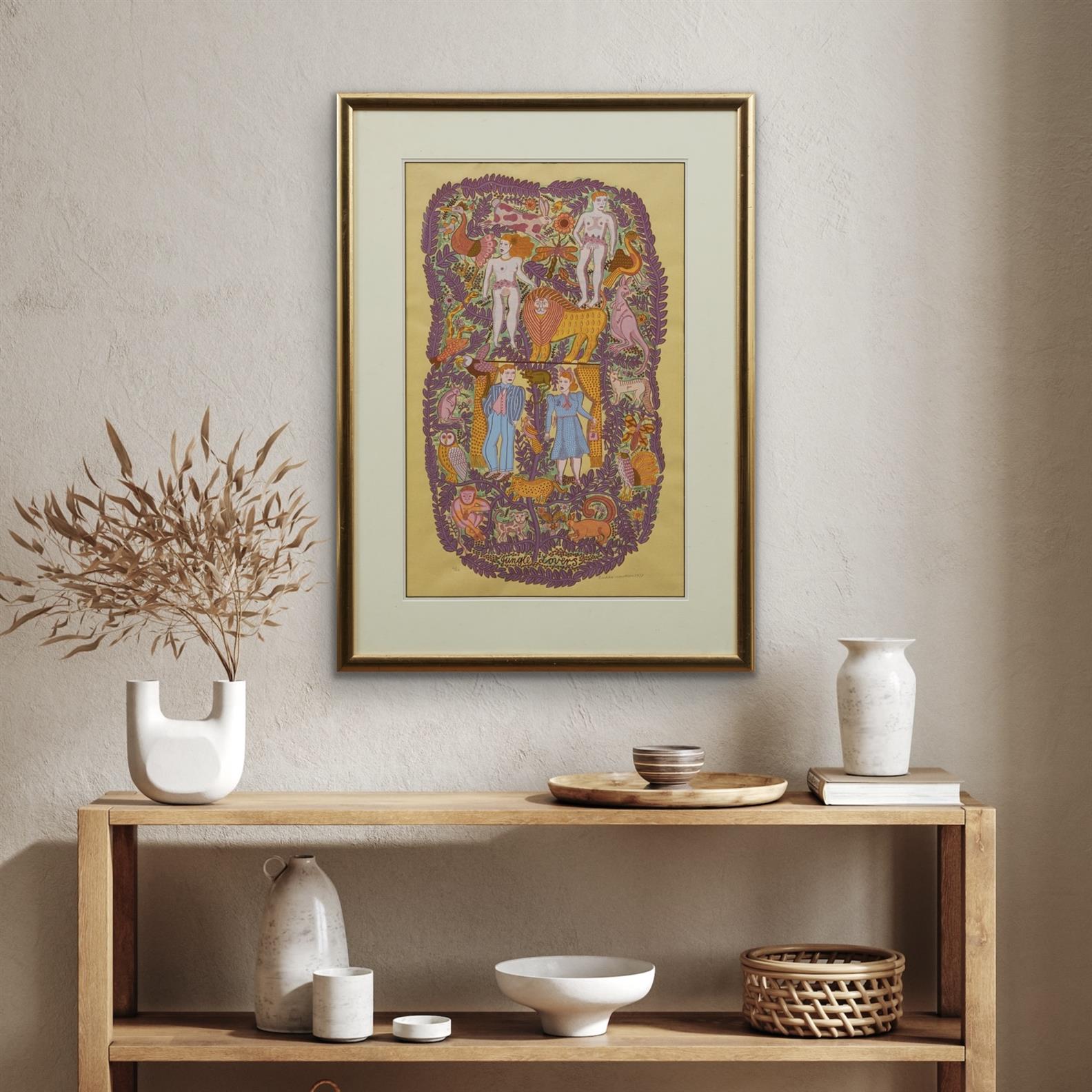 BRETT WHITELEY (1939-1992) Banjo Player 1974 ink on card 73 x 102cm (86.5 x 115.5cm framed)