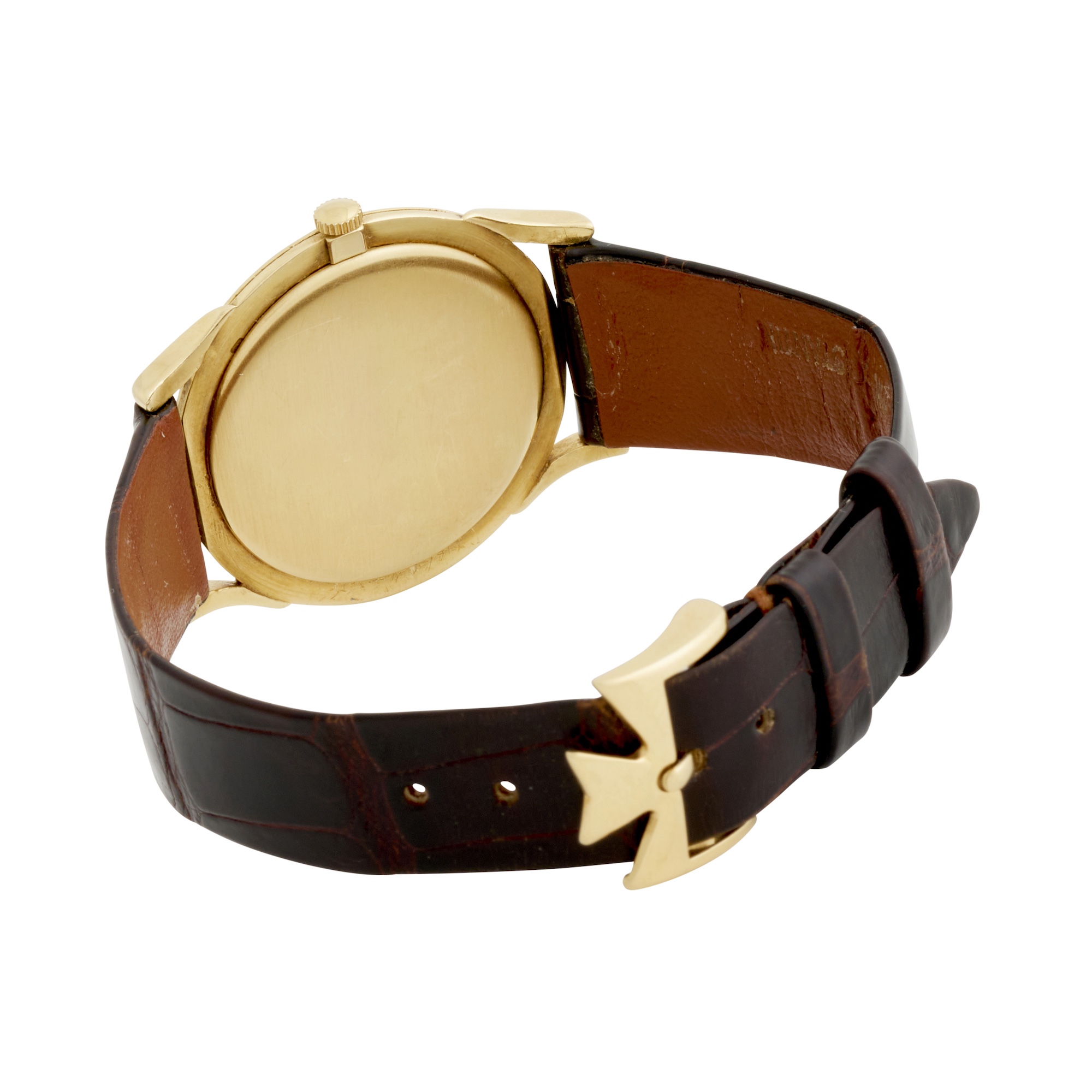 Closure: Vacheron and Constantin black leather strap and maker's 18ct gold buckle