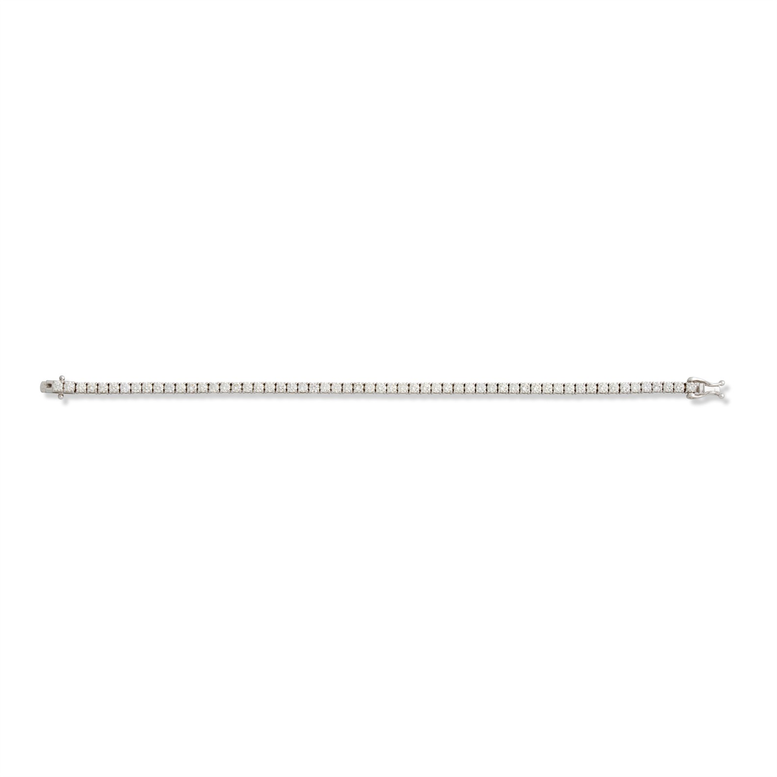 Composed as a line of 58 claw-set brilliant-cut diamonds completed by a concealed box clasp, the diamonds together weighing approximately 5.22 carats, mounted in 14ct white gold, length 180mm, gross weight approximately 8.8 grams.