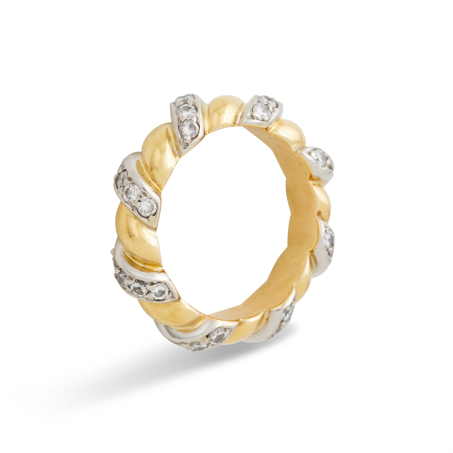 Of twisted rope design, pavé-set at intervals with brilliant-cut diamonds, the diamonds together weighing approximately 0.60 carats, mounted in 18ct gold and platinum, size N, gross weight approximately 7.5 grams, signed Verdura.