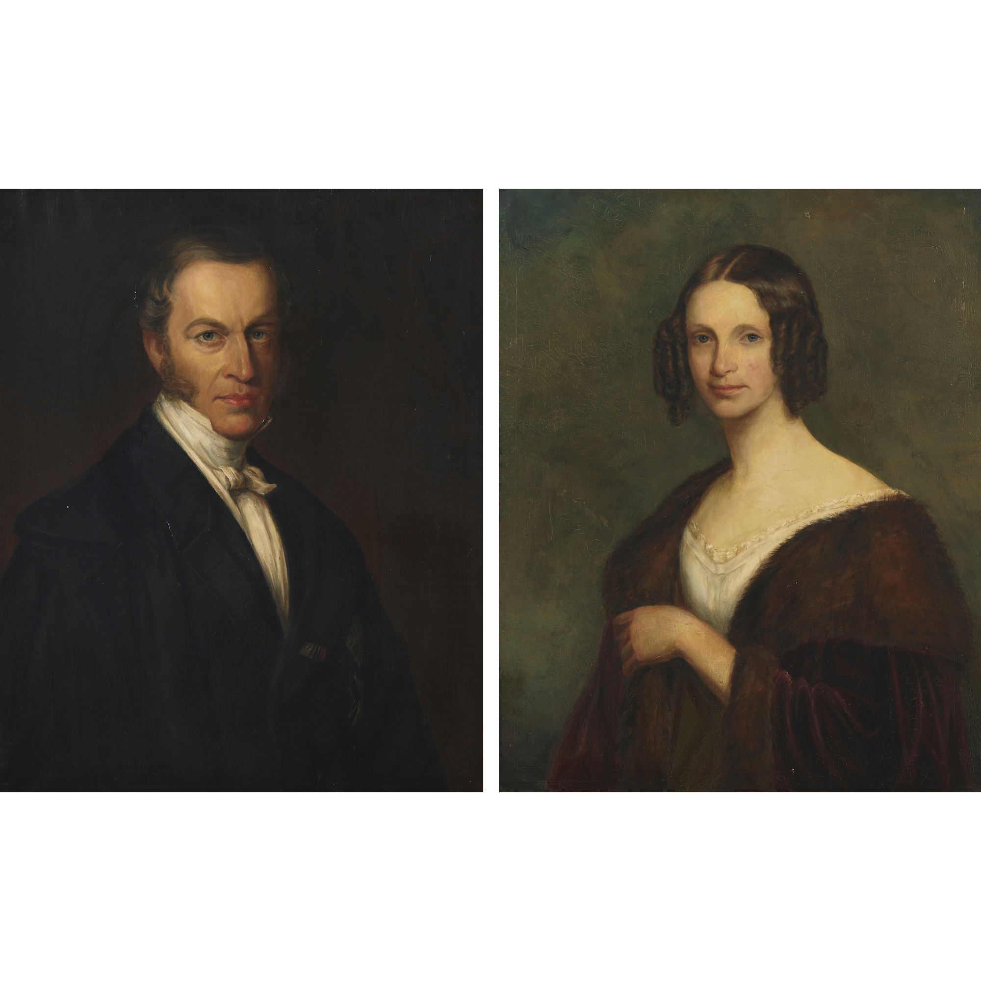 A pair of long bust-length portraits of a gentleman and lady, probably Karl von Küster (1808–?) and his wife Baroness Marie (née Geymüller, 1811–1866)