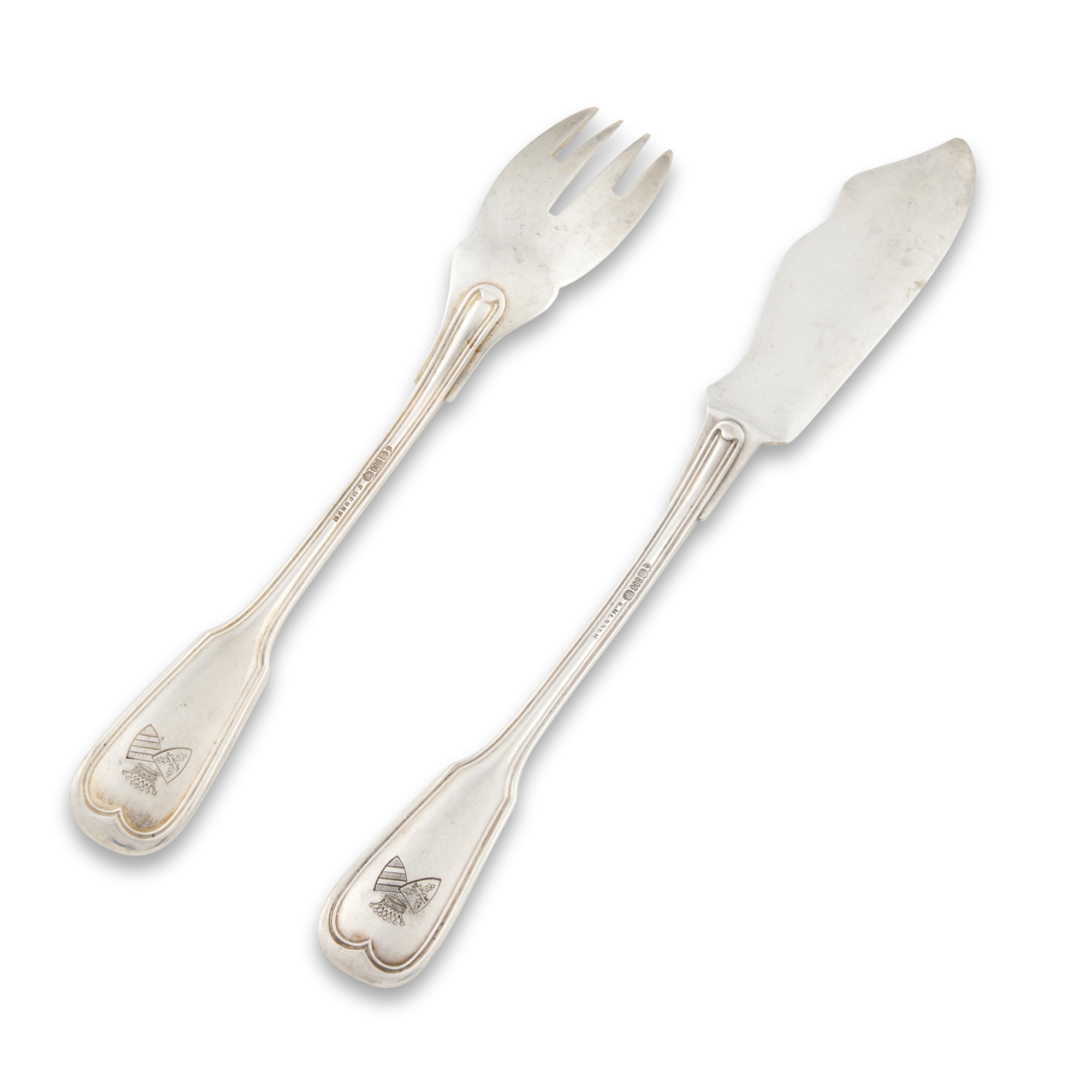 AN ANTIQUE GERMAN SILVER FLATWARE SERVICE FOR FISH