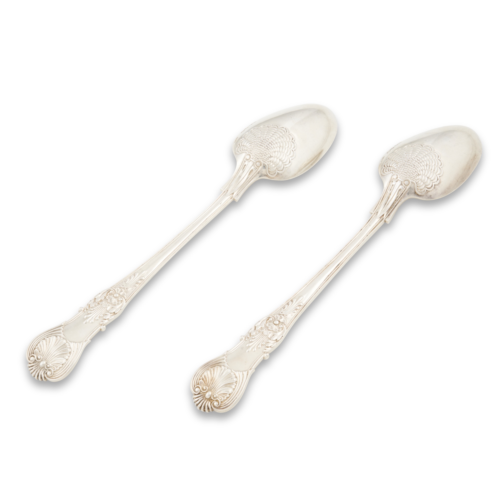 A PAIR OF VICTORIAN STERLING SILVER COBURG PATTERN BASTING SPOONS