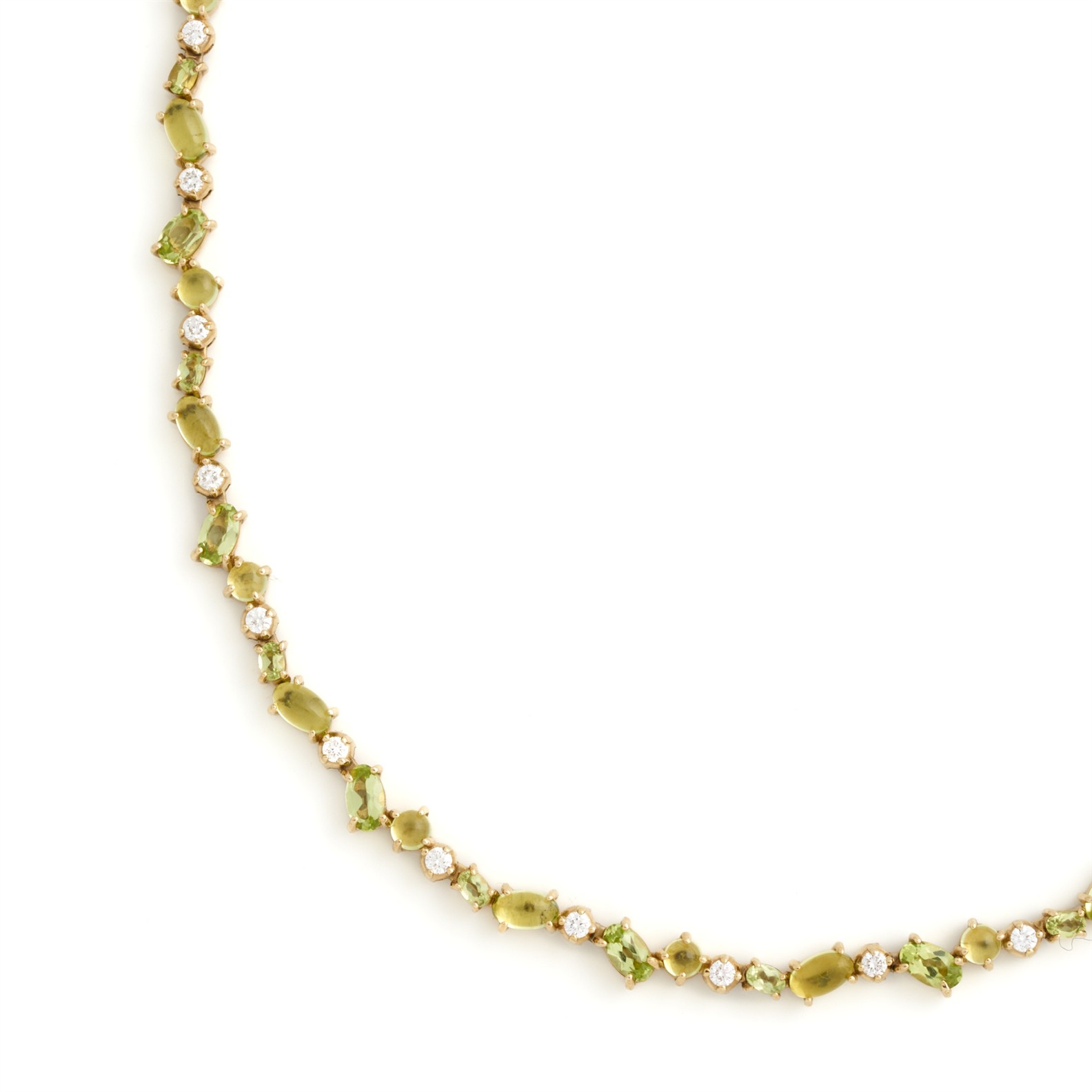 SARAH & SEBASTIAN, A 'SAND' PERIDOT AND DIAMOND TENNIS NECKLACE IN 10CT GOLD, LENGTH 360MM, TOTAL WEIGHT 19.45GMS